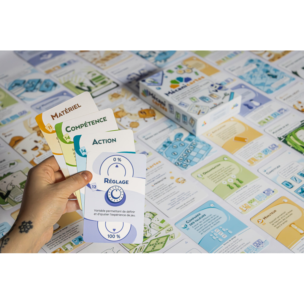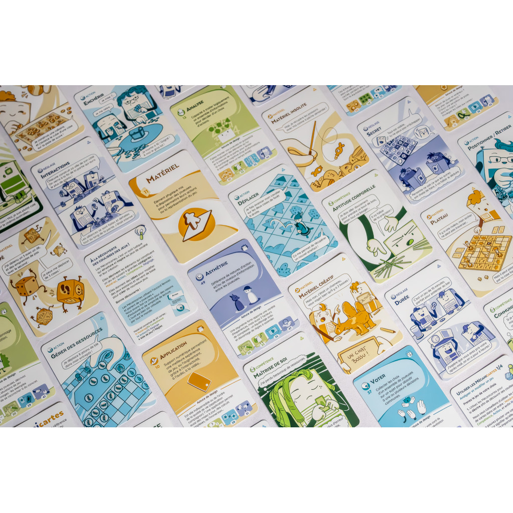 Mécanicartes is a fun tool that breaks down board games into game actions, skills used, concrete materials, and adjustments to concepts and variables such as chance or cooperation.
