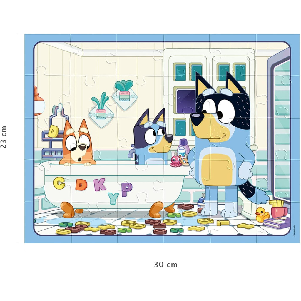 The 30-piece puzzle is the perfect format for exploring the universe of their favorite heroes. The little extra from Nathan is the included full-size, colorful poster, which helps visualize the puzzle's final size. Additionally, the marked edge pieces allow children to quickly identify which pieces to start with. It’s bath time for Bluey and her little sister Bingo. They love this moment because it’s the perfect place to imagine countless stories! A delightful puzzle for all Bluey fans.