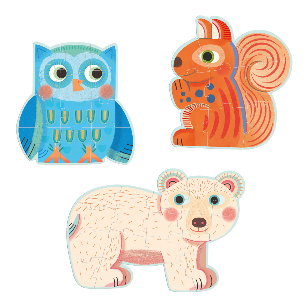 Content : 4 shaped jigsaws with 3, 4, 5 and 6 pieces.