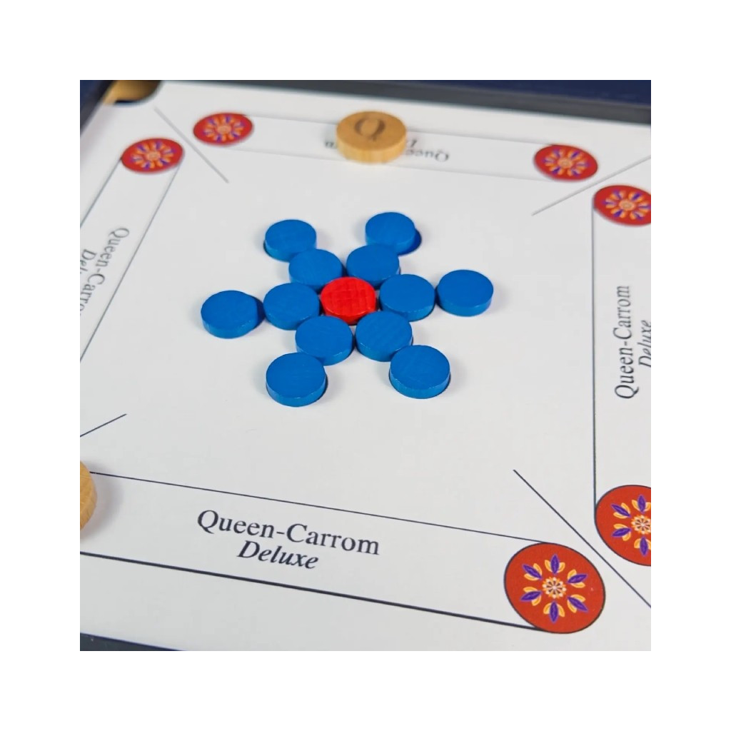 - Victory: The player who pockets all their pieces first (and covers the Queen) wins the round.