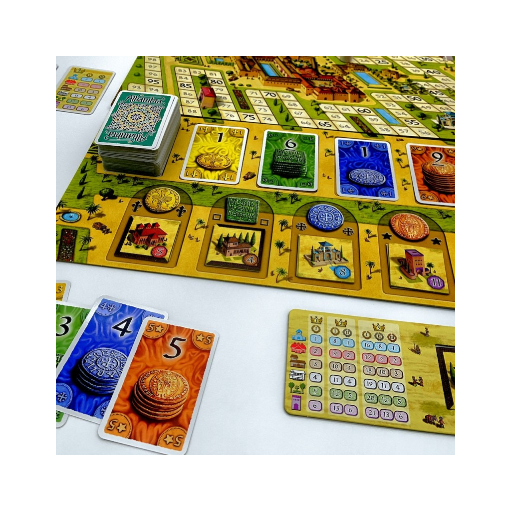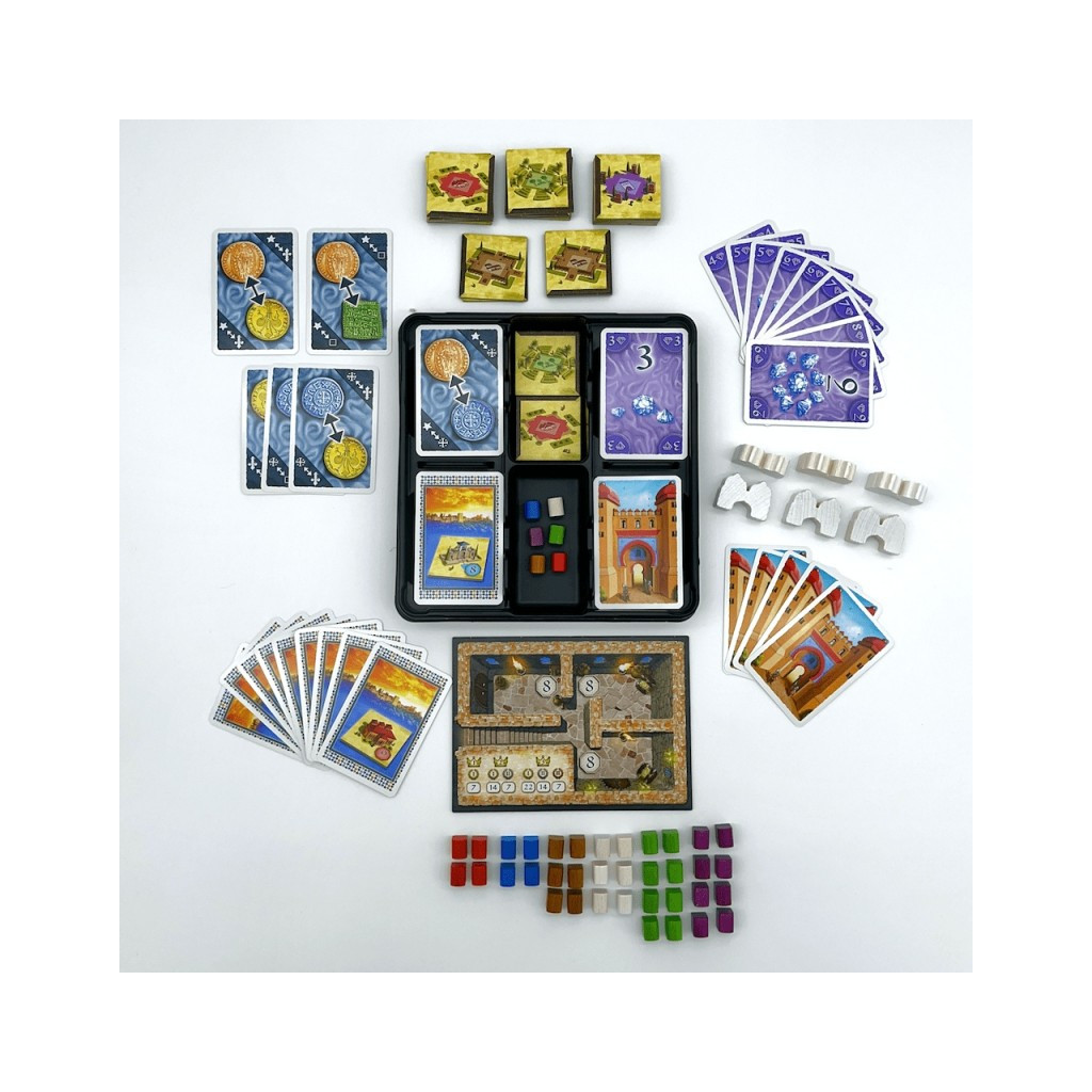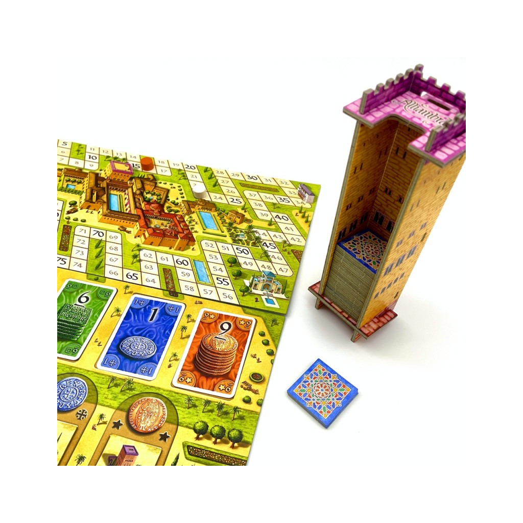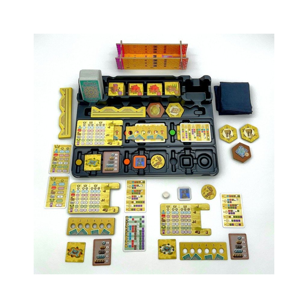 A hit with critics and the public alike, Alhambra has achieved the feat of being simple, accessible, and endowed with a tactical depth that guarantees its longevity. This is even more true in this Big Box, which contains all five expansions: Vizier's Favor, City Gates, Thieves, Chamber of Treasures, and Sultan's Power.