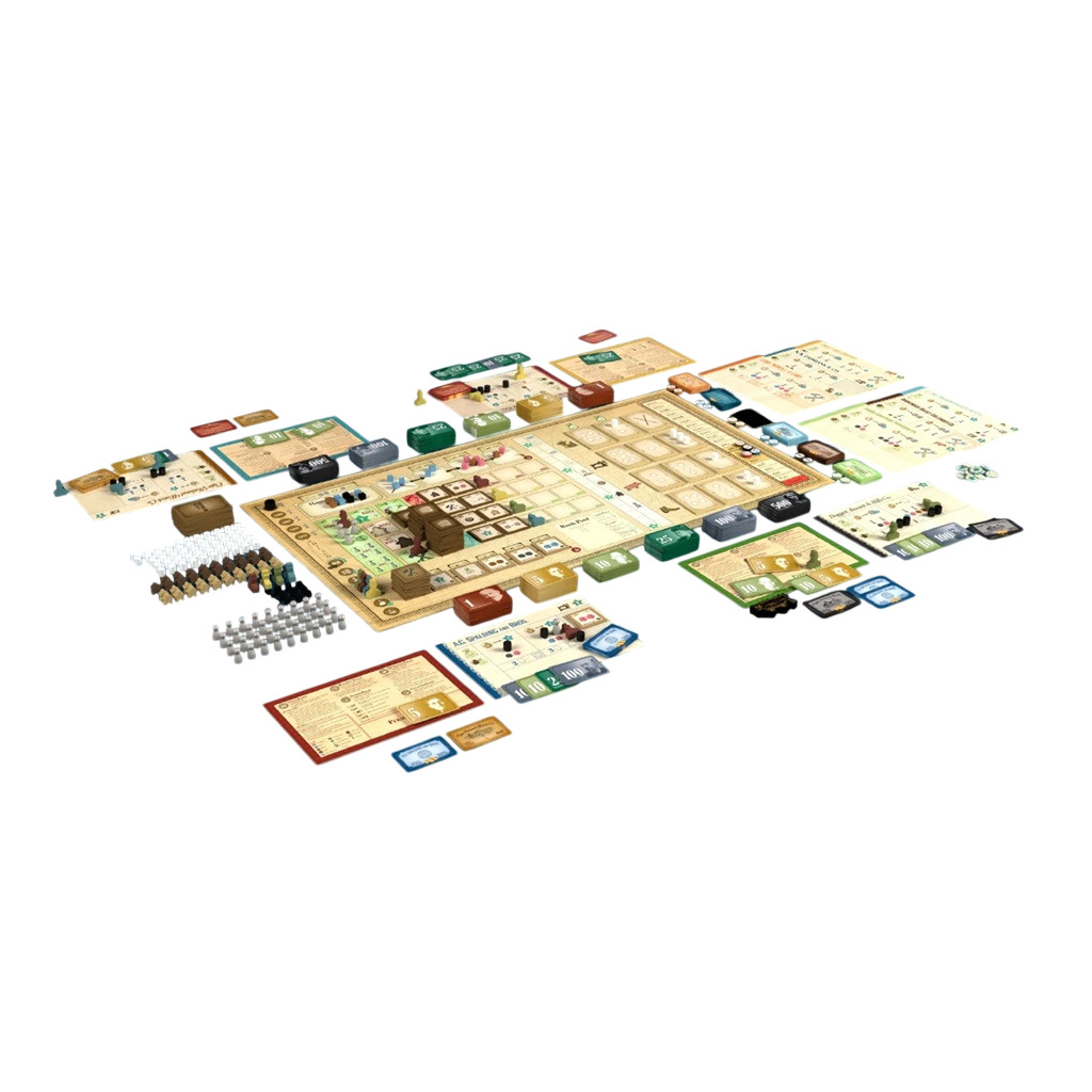 In this unique fusion of 18xx-style stock market manipulation mechanics and European-style gameplay, players create companies, trade stocks, hire employees, equip their factories, produce goods, and sell them for delivery to homes across the Midwest.