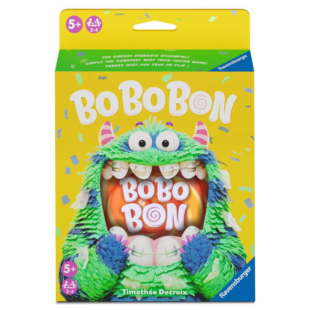 Bo Bo Bon - The super easy introduction to trick-taking games. Cards of different sizes make the trick-taking principle intuitive and easy to understand: Try to take as many tricks as possible by playing the highest card. But be careful! Some tricks are not worth taking. If an ant has been revealed and you take the trick, it simply steals a point from you. This trick-taking game requires careful thought, but a pinch of luck is also needed.