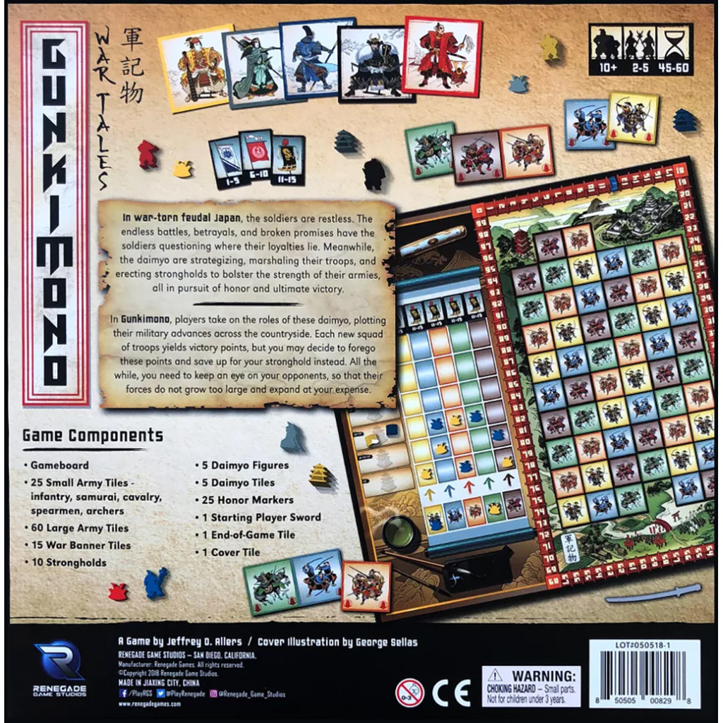 Immerse yourself in the tumultuous era of feudal Japan with Gunkimono, an engaging board game brought to you by Renegade Game Studios. Set against the backdrop of war-torn landscapes, Gunkimono captures the restlessness of soldiers, the strategic machinations of daimyo, and the pursuit of honor and victory.