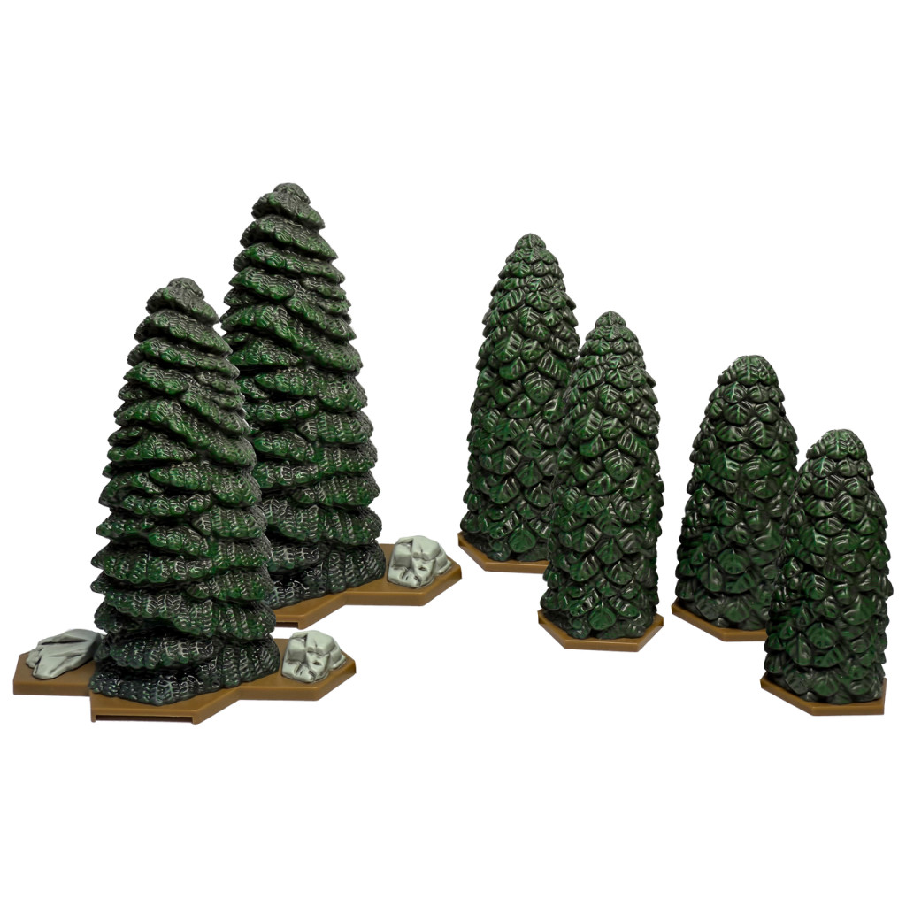 Towering evergreens provide natural cover, block line of sight, and create ambush opportunities as your armies navigate dense woodland battlefields. Perfect for staging surprise attacks or fortifying defensive positions, these highly detailed trees add both tactical depth and visual impact to your Heroscape maps.