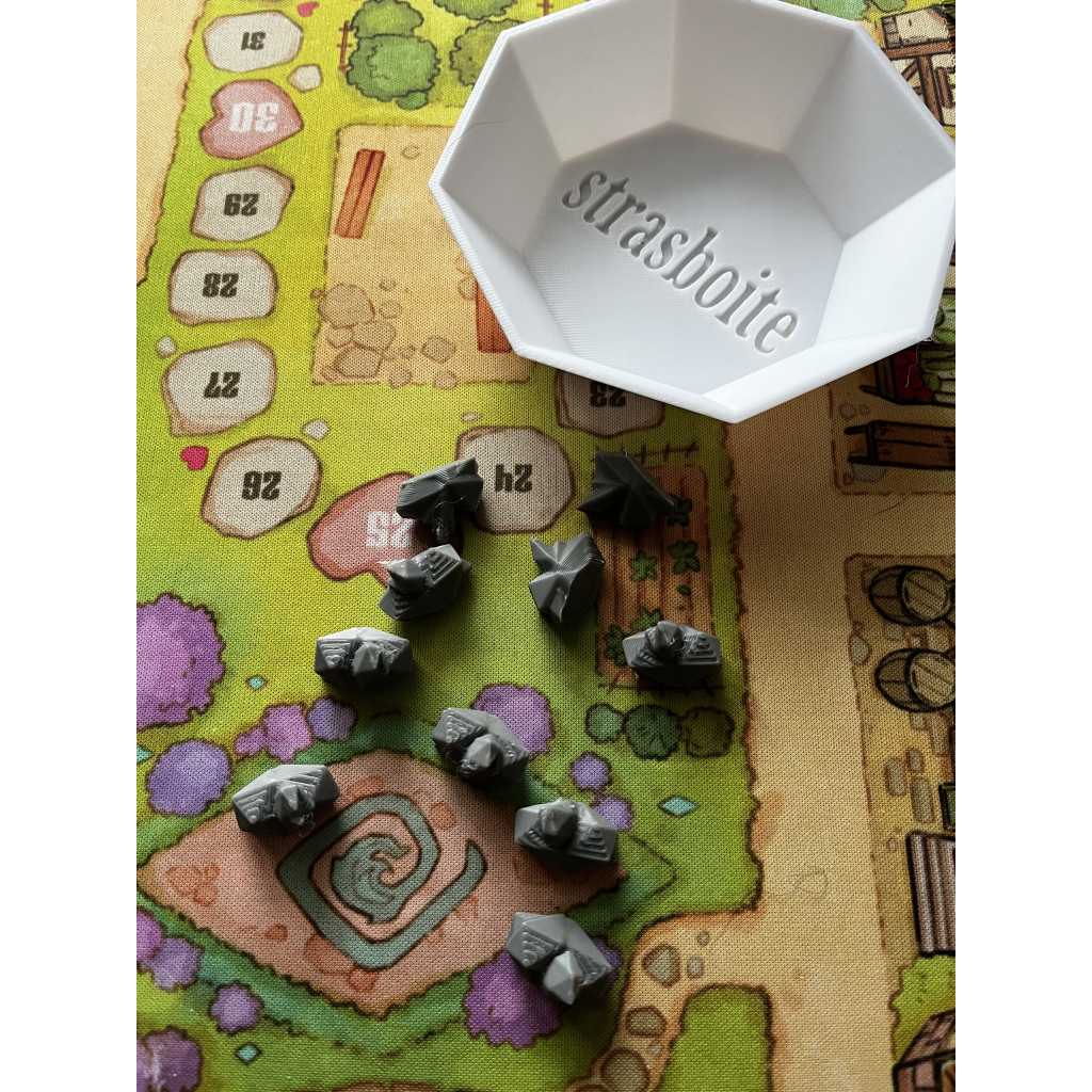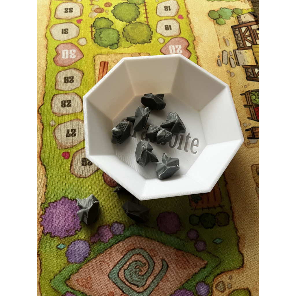 The design is three-dimensional, and the resource is flat on the underside so it can be placed on your game table without slipping.