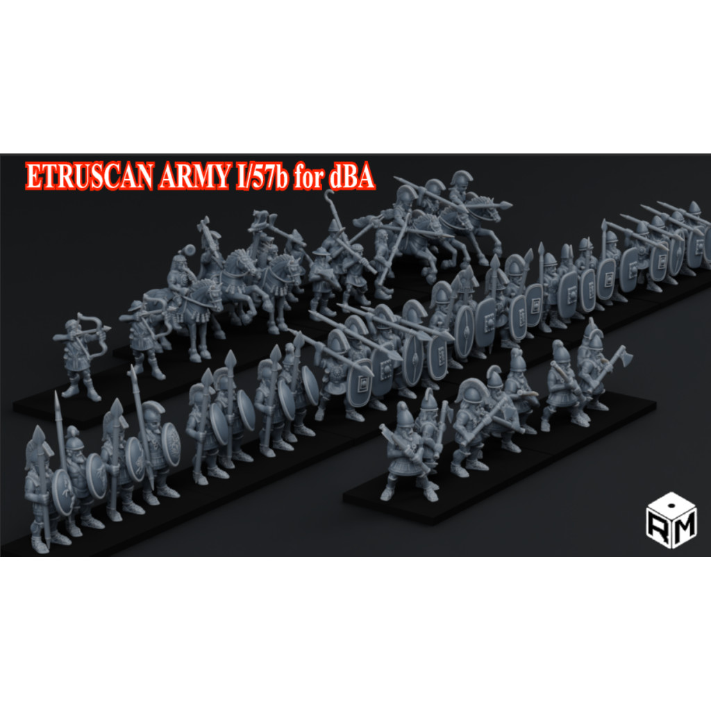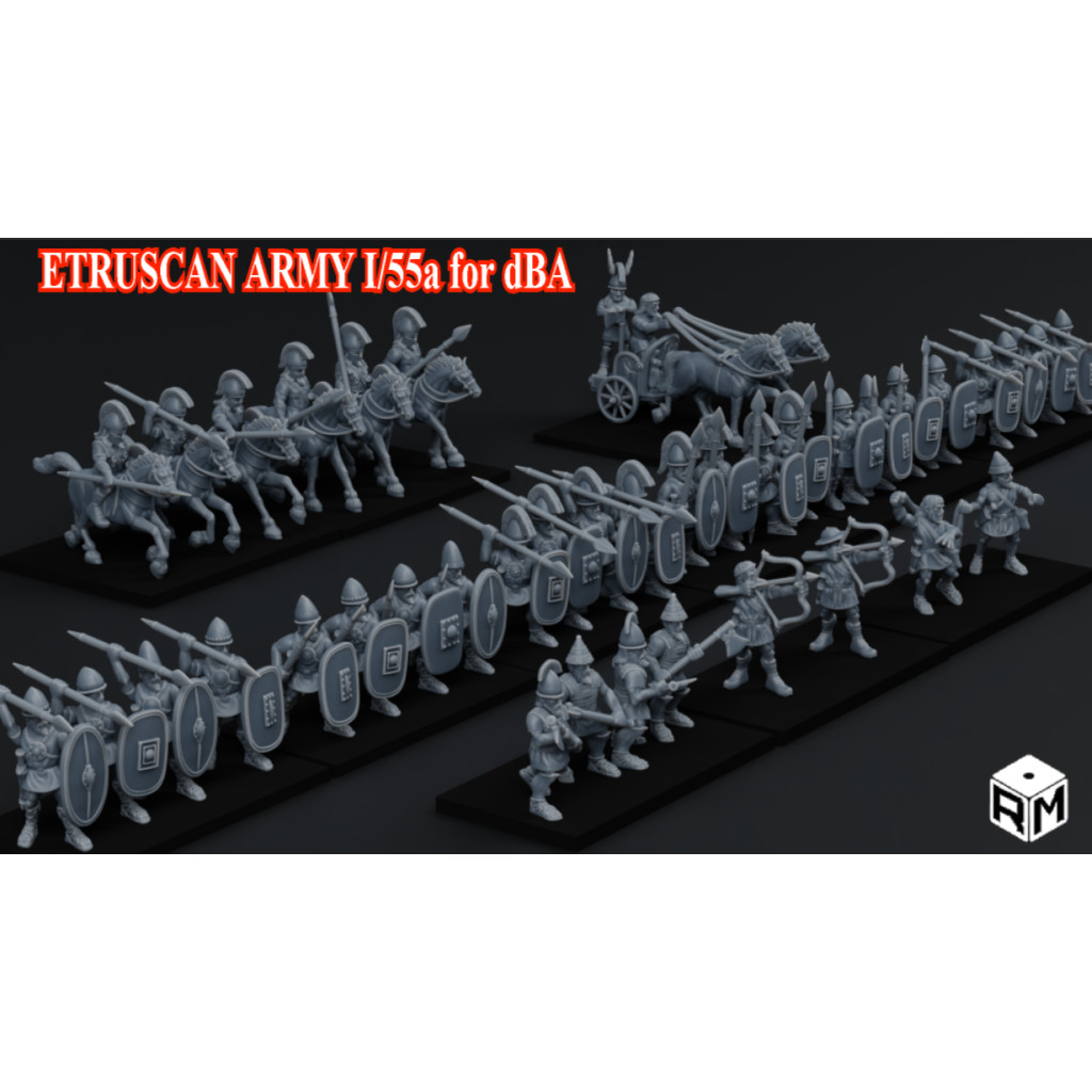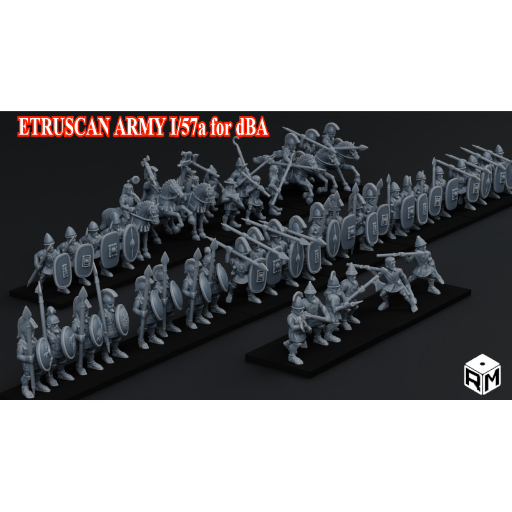 The Etruscan Army Pack from Rise Miniatures is specially designed for DBA, allowing all possible army configurations for the following lists: