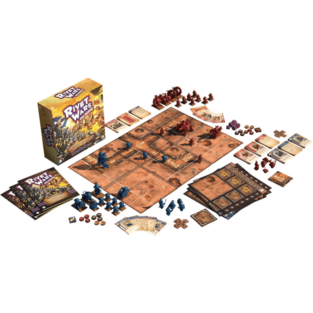 Each fast-paced Rivet Wars battle is 30 - 60 minutes of non-stop action. Play single sessions, or rally your troops for a full campaign. And it's not just the gameplay that's lightning fast — set-up is super quick too. Just lay down tiles and tokens, pick a faction, and jump into the fray!