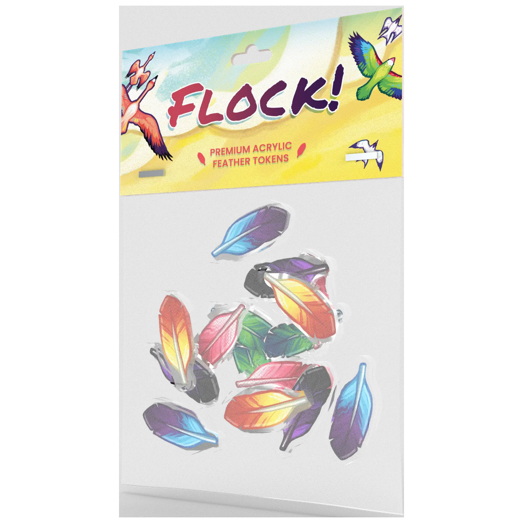 Lose your mind herding birds to your island in style with these wonderful Premium Feather Tokens for Flock! (fits in Flock! standard box).