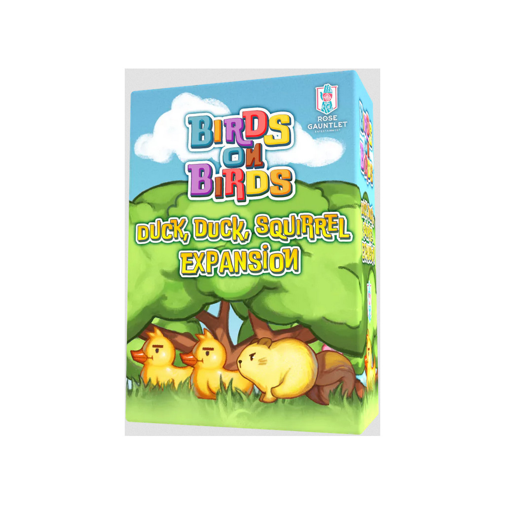 Expand the bird stacking fun with rubber duckies and premium wooden squirrels (Contents fit in Birds on Birds standard box).