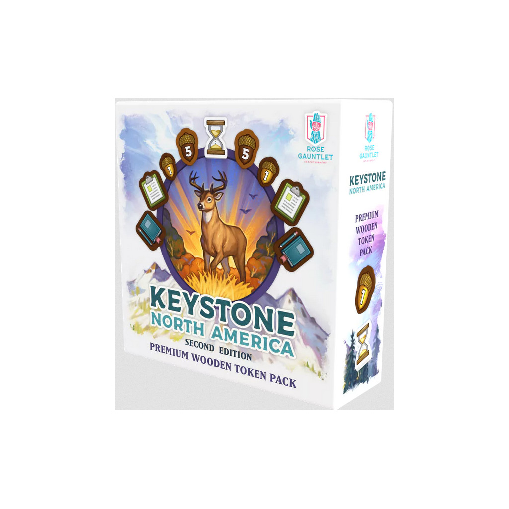 75 premium full color wooden tokens to replace the cardboard versions in Keystone North America: 2nd Edition.