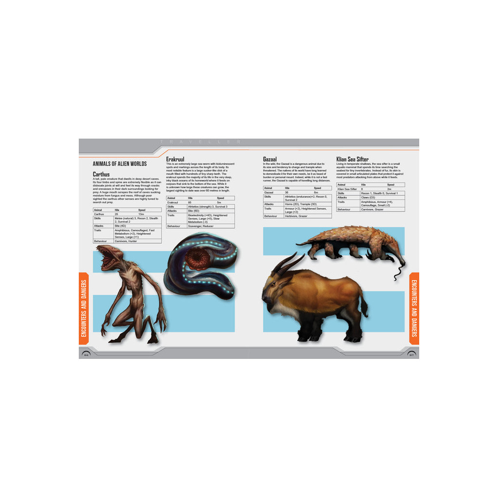 Spaceports, ancient civilisations, air/rafts, cold steel blades, laser carbines, far distant worlds, and exotic alien beasts – this is the futuristic universe of Traveller, the original and classic science fiction roleplaying game.
