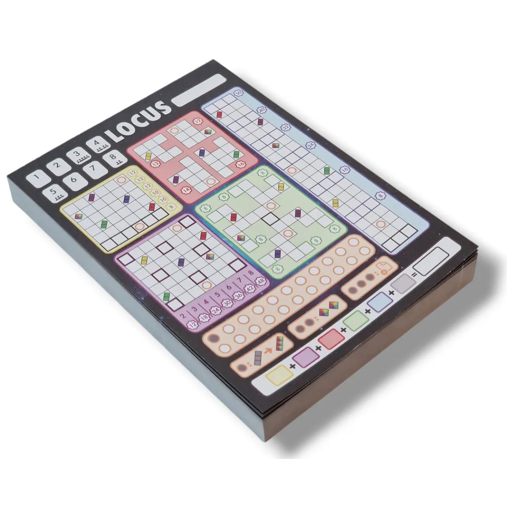 In Locus, players compete to earn as many points as possible by filling their score sheets.