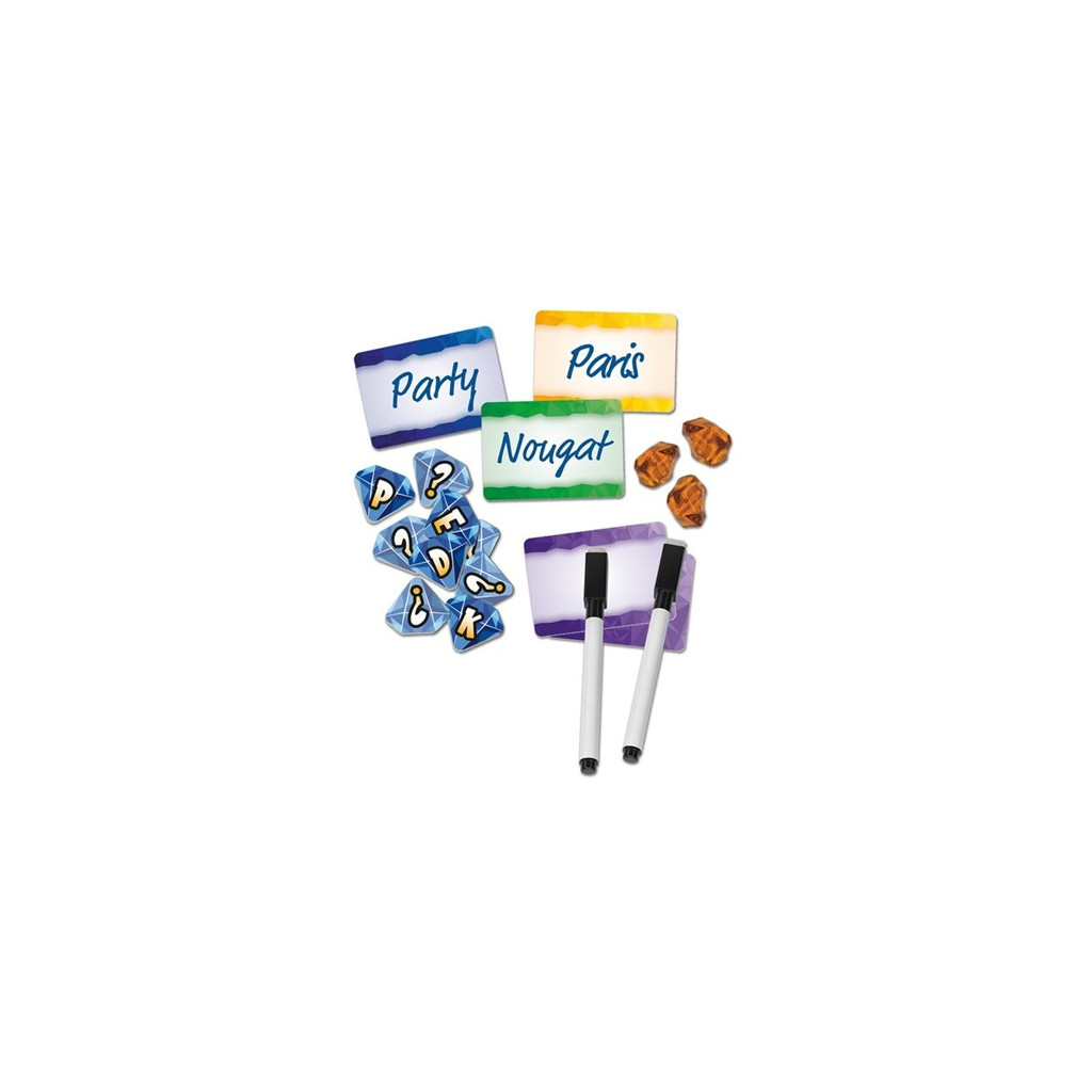 Secretly, each player writes a word related to the words previously written. Each match with another player earns the group gems.