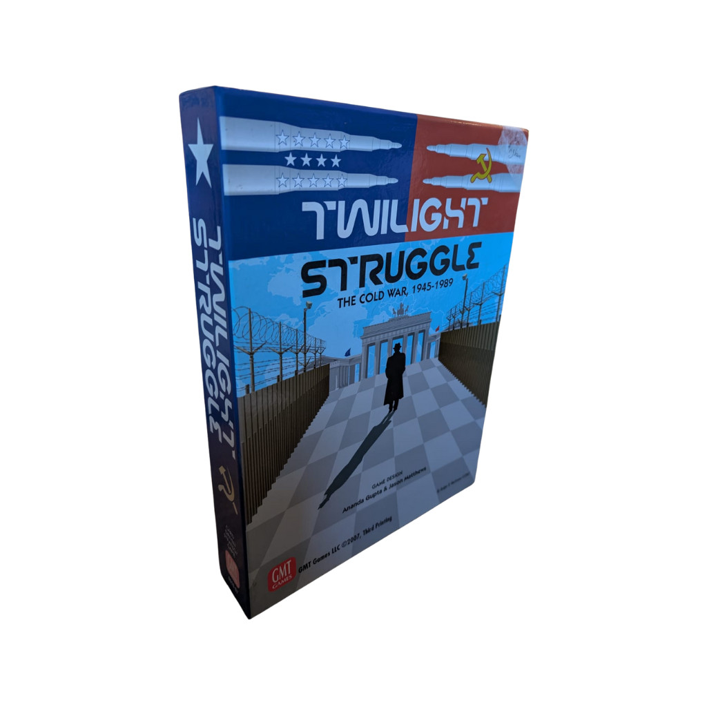 Twilight Struggle is a 2-player strategic board game simulating the 45 years of Cold War tension between the United States and the Soviet Union (1945–1989). The game uses a card-driven system with historical event cards — crises, proxy wars, diplomacy and influence — combined with influence placement and coups d’état. Players must carefully manage global influence, strategic positioning, and timing to dominate key regions of the world