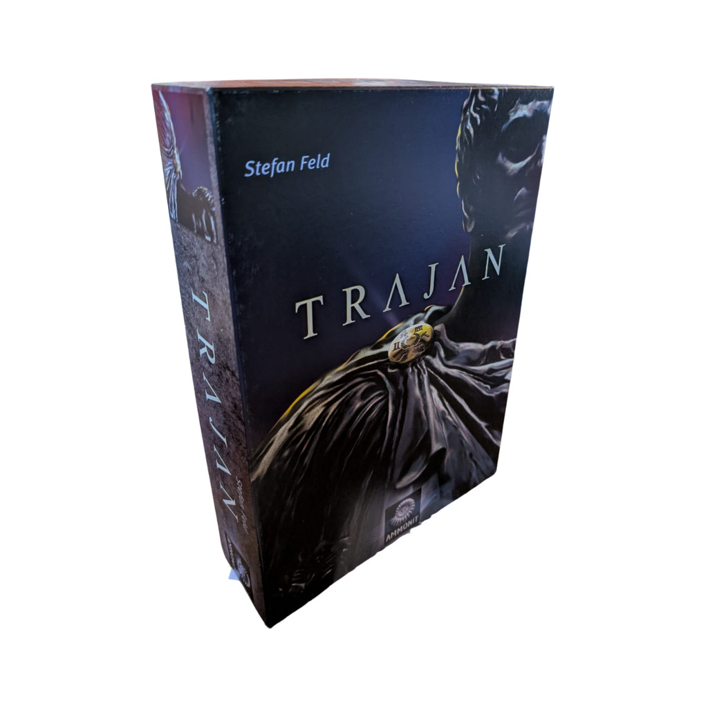 Trajan is a strategy and resource management game for 2–4 players, set in ancient Rome. Players manage actions on both personal and collective boards using a unique action disc mechanism. Every choice must be carefully planned, as timing is critical to score points across different tracks: army, commerce, buildings, politics, and population.