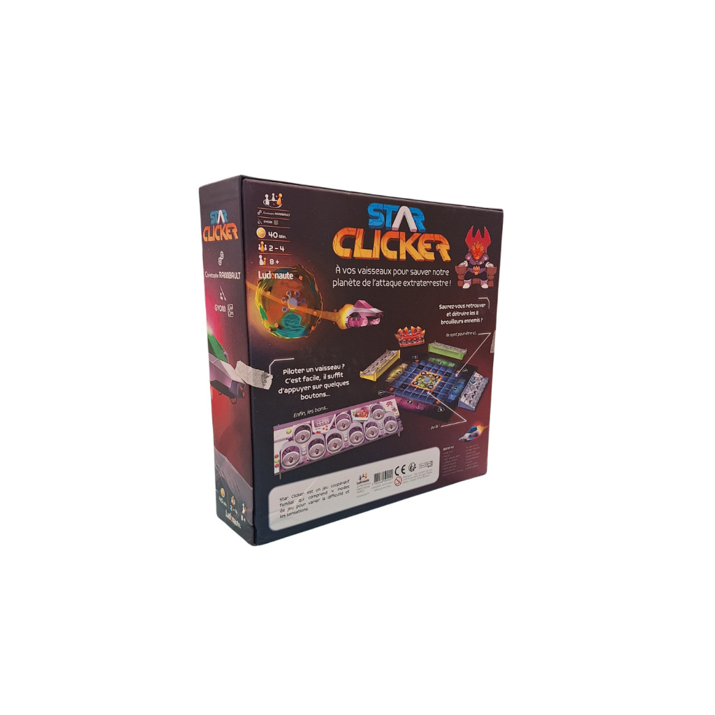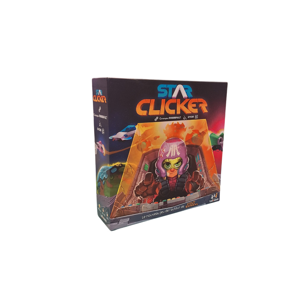 Star Clicker - Second Hand is a cooperative family board game designed by Christophe Raimbault (also author of Colt Express) and published by Ludonaute. In this original and accessible game, players take on the role of a team of young pilots determined to save their planet C-64 from an alien invasion led by the devious Creepers.