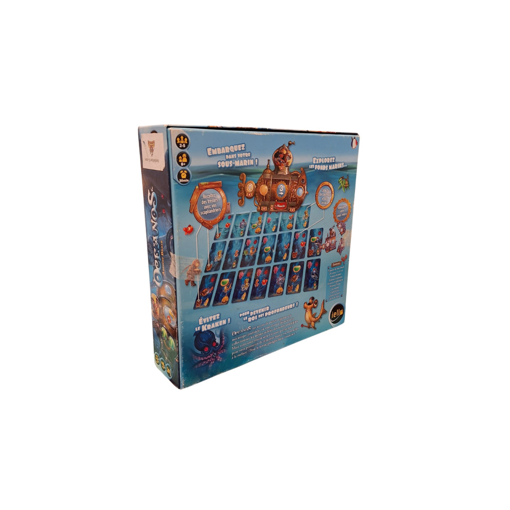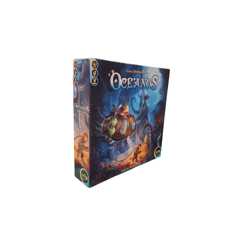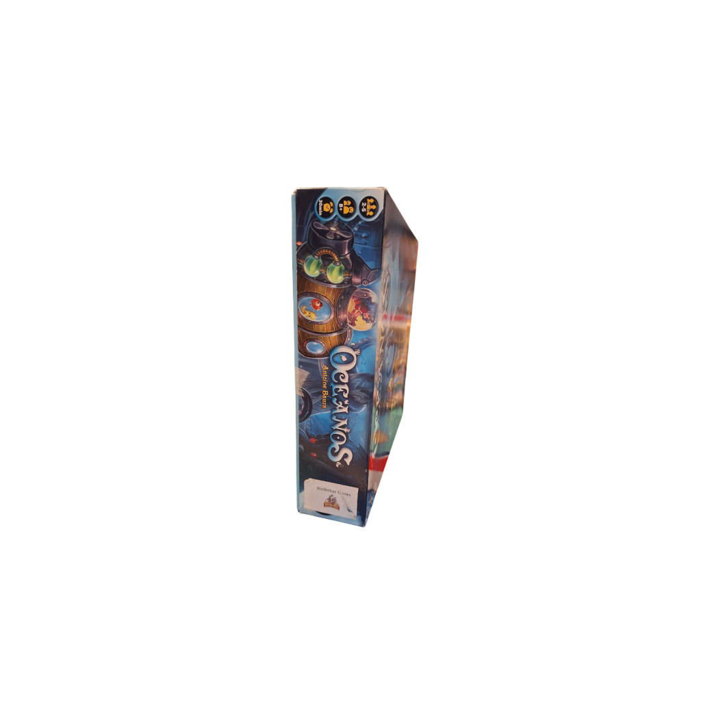 Oceanos - second hand is a family tile placement board game published by Iello. The game invites players to embark on an underwater exploration to discover marine life and ecosystems, while building a mosaic of ocean tiles to score points.