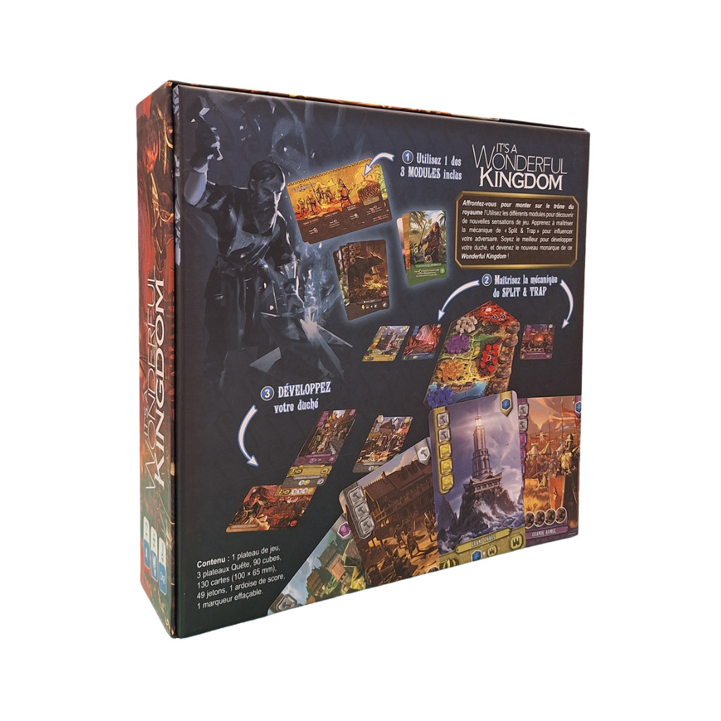 In this dark fantasy universe, each player embodies a faction seeking to develop their duchy in order to gain the upper hand over their rival. The game draws on the universe and certain principles of It’s a Wonderful World, but offers an experience that has been completely redesigned for duels.