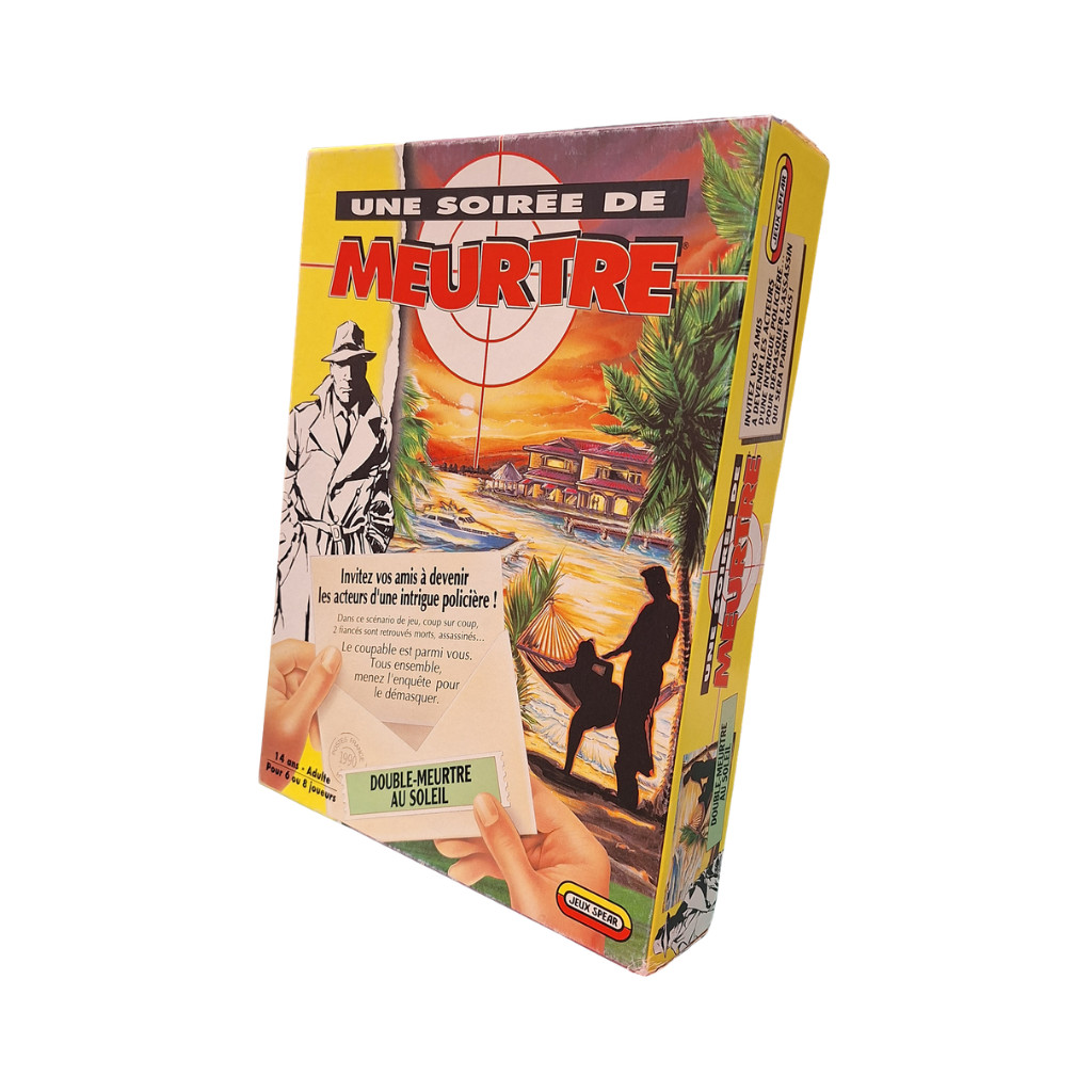 Une Soirée de Meurtre is an immersive murder mystery game where players must gather clues and interrogate suspects to solve a crime. The game includes envelopes containing story elements and an audio cassette to guide the session.
