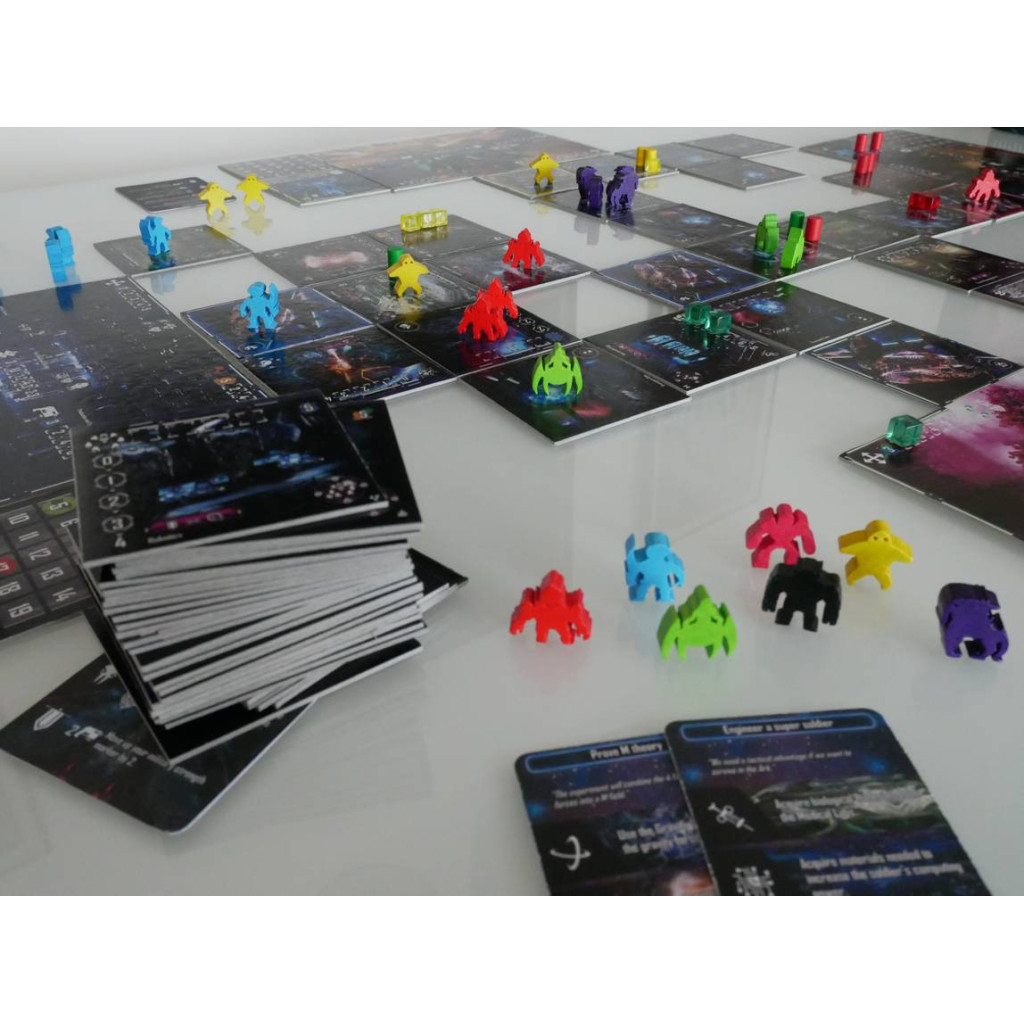 - "The Guardians" solo and cooperative mode against an automated opponent or a "dark player". Players must fulfill their joined mission and in the same time avoiding the Guardian meeples that will move through the board and disintegrate anything in site.