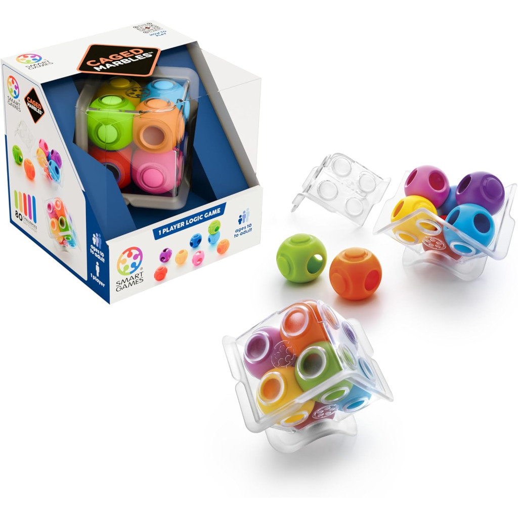 Caged Marbles is a engaging puzzle where players fit uniquely designed marbles, each with specific bumps and holes, into a two-part cube. The goal is to align these elements perfectly to close the cube with a satisfying "Click". This puzzle demands logic and spatial reasoning, offering a single solution to each challenge for a rewarding experience in a fun and tactile way.