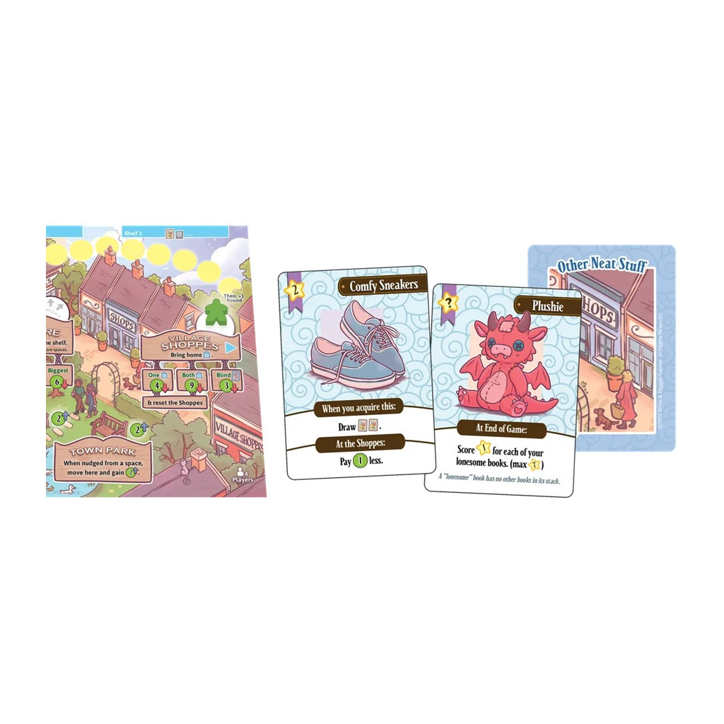 Over the course of nine rounds, players visit different locations and collect books in order to achieve their goals and earn victory points. The player with the most victory points wins.