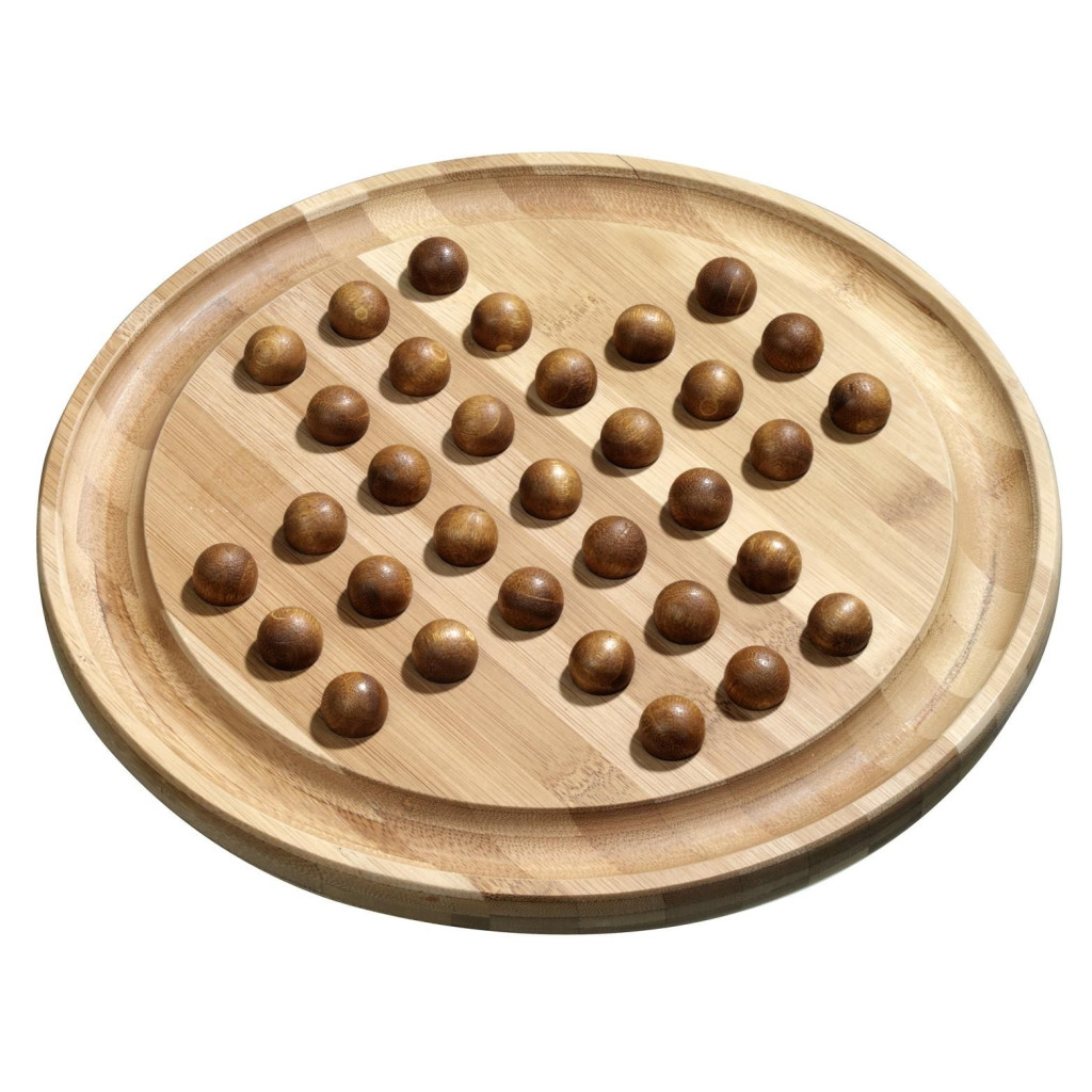 Solitaire is a combination game for one player. It is played with a board containing 33 holes. The game begins with all holes except one containing a playing piece. The aim of the game is to remove all the playing pieces except the last one. A move is affected by one playing piece jumping over an adjacent one into a vacant hole beyond.