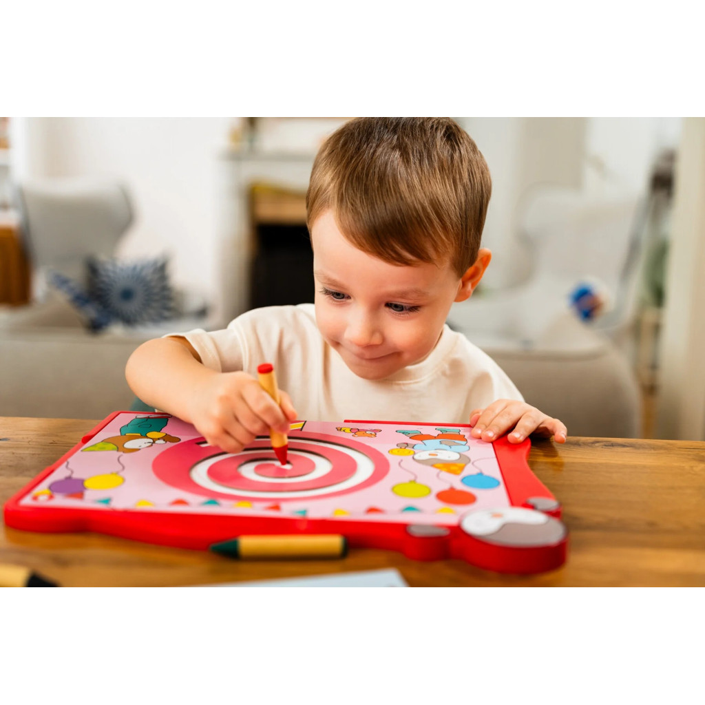 This creative game offers 16 cardboard templates with stencils for drawing circles, waves, spirals, and other shapes. Children follow the lines, then remove the stencil to create their own drawings.