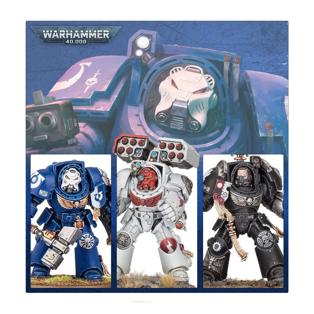 To bear the Crux Terminatus, a Space Marine must have proven their worth in countless battles, mastered every form of warfare, and survived conflicts with every enemy Humanity faces. Once given, these veteran soldiers are granted the honour of wearing fearsome Terminator armour into battle. When deployed in force, there are few foes they cannot best with the combination of nigh-impenetrable armour and overwhelming martial prowess.