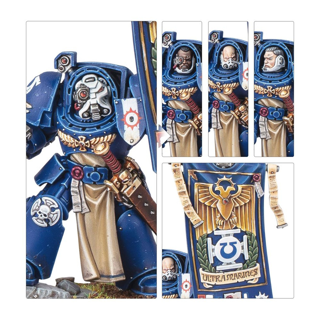 The Ancient in Terminator Armour has four heads to choose from, two different right arms, and his banner has a choice of two toppers.