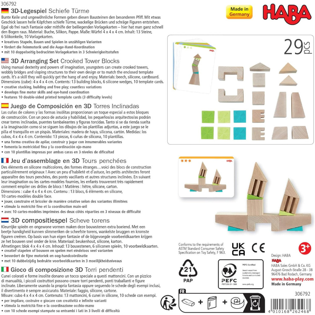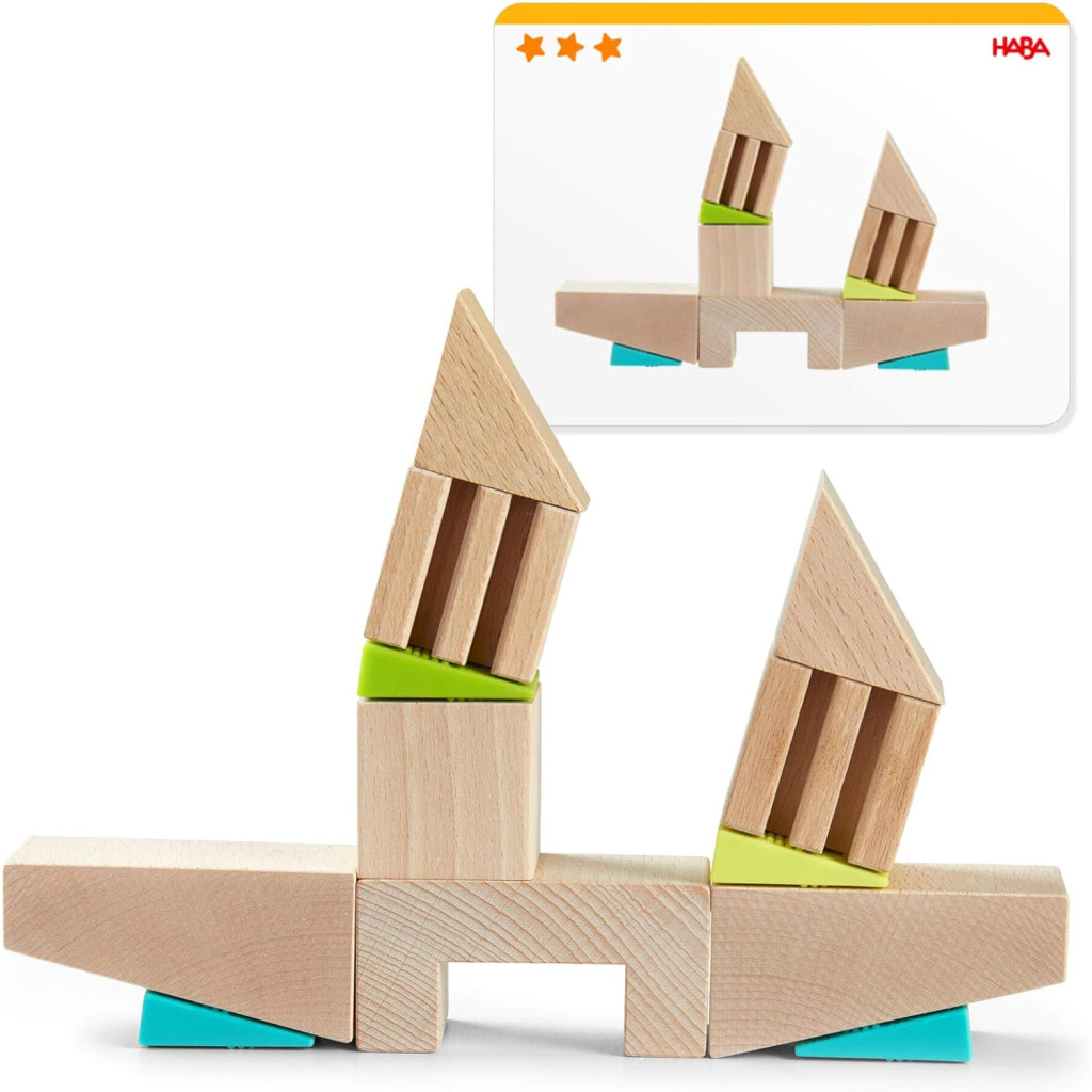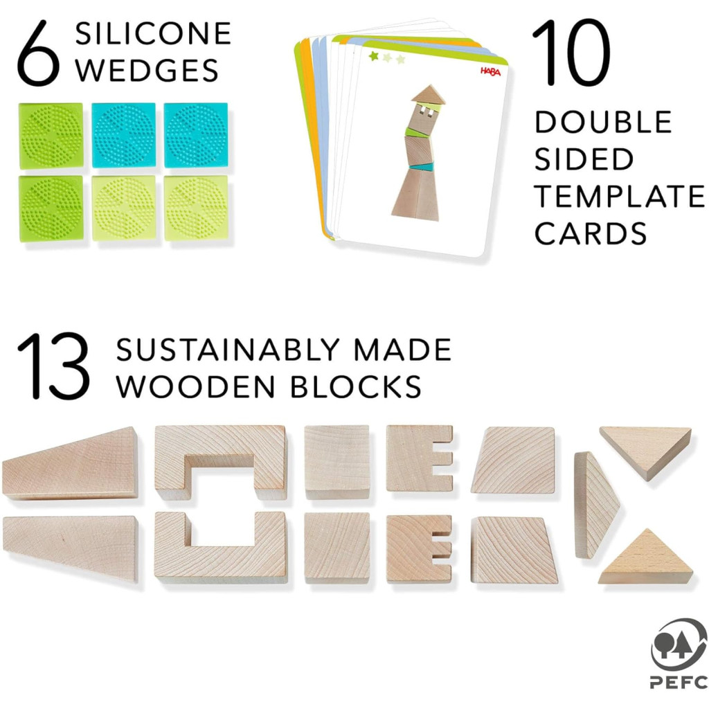 Stacking game for ages 3+ with 10 model cards and 3 difficulty levels.