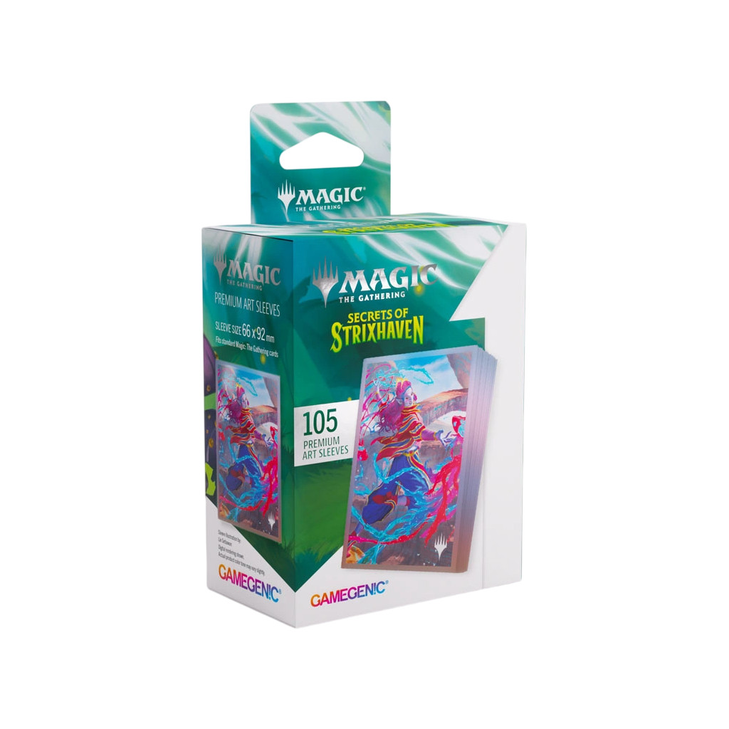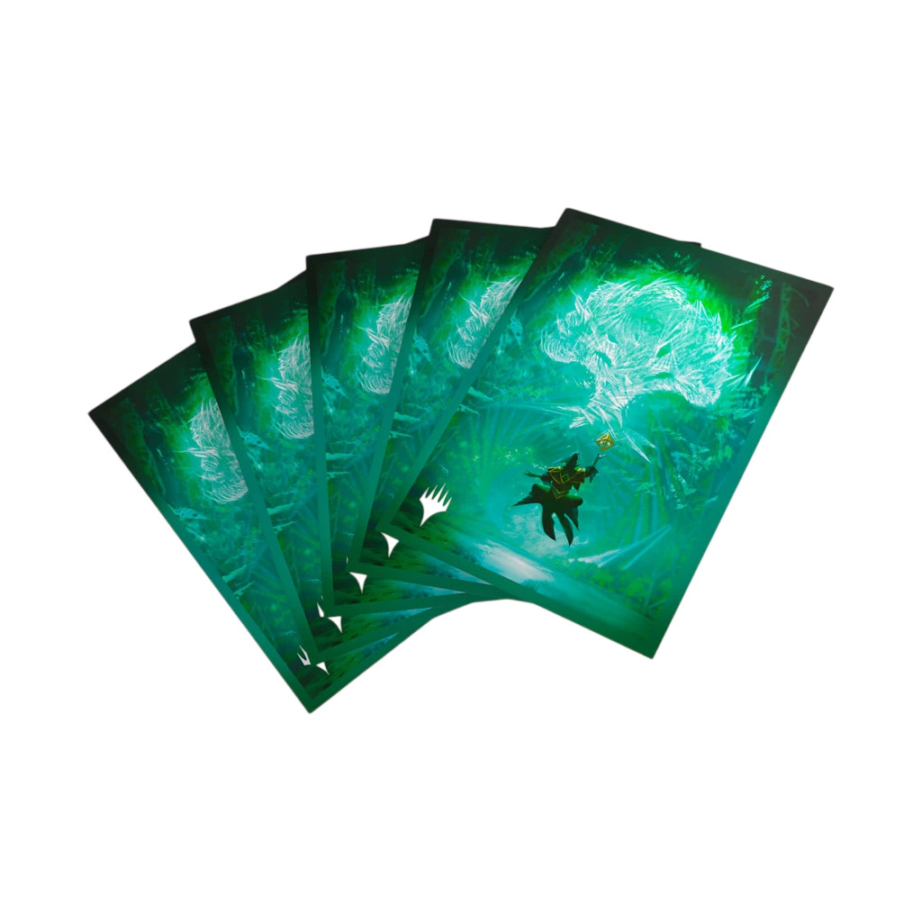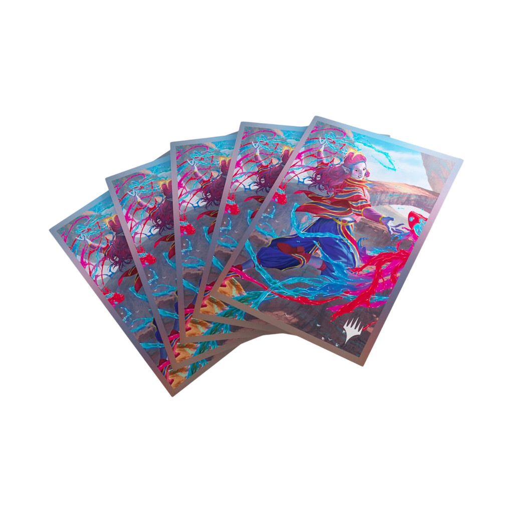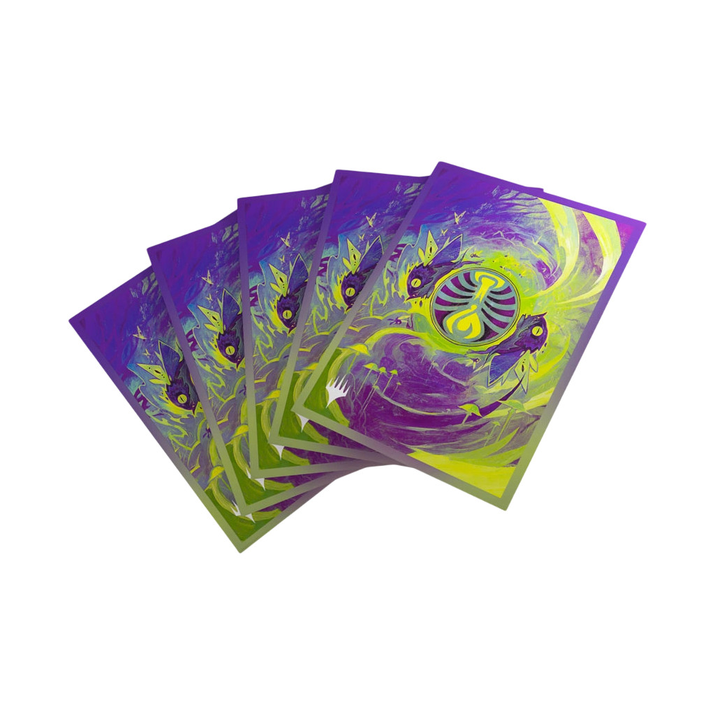 These premium-quality, full-color printed Art Sleeves with textured finish are a must-have for every fan of the game. The matte back and clear front provide an exceptional tactile feel and an incredibly smooth shuffle experience. Each pack includes 105 sleeves and comes in fully plastic-free full-art packaging with a retractable hanger.