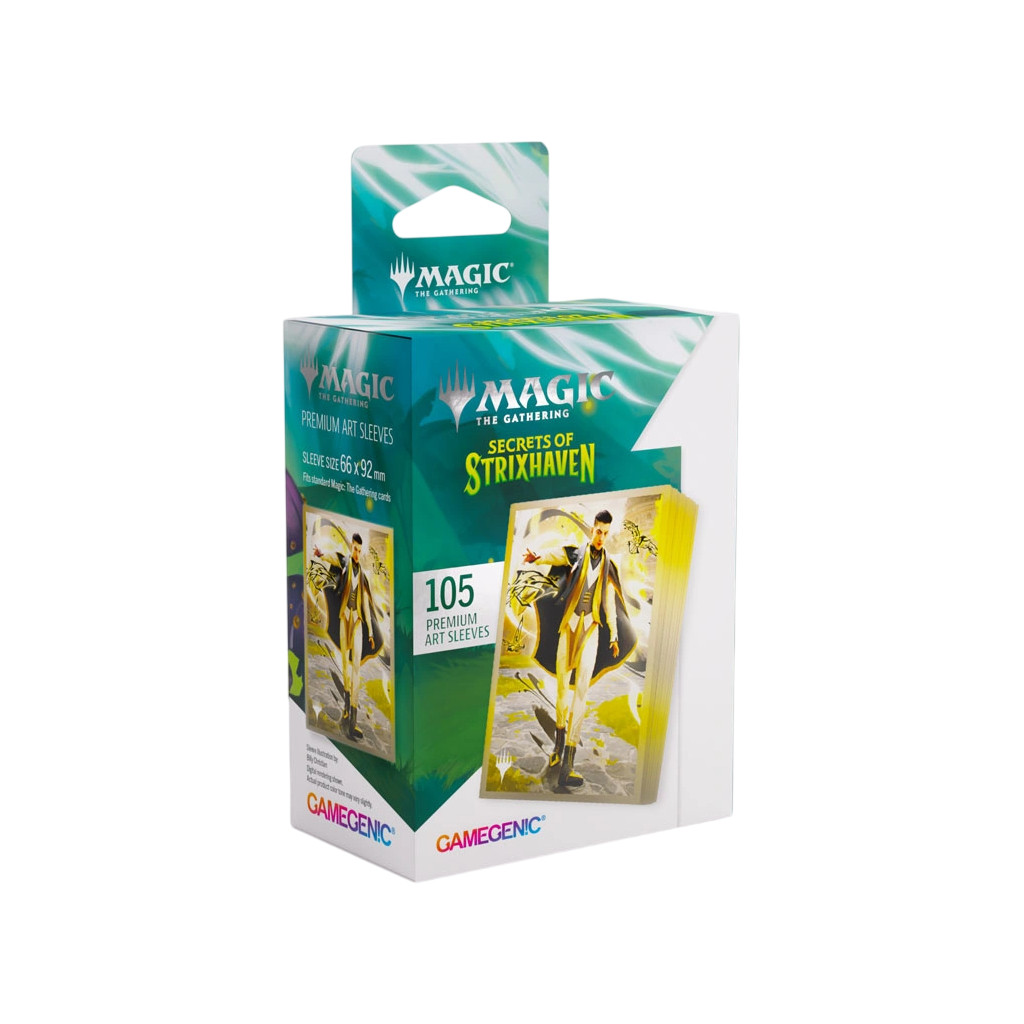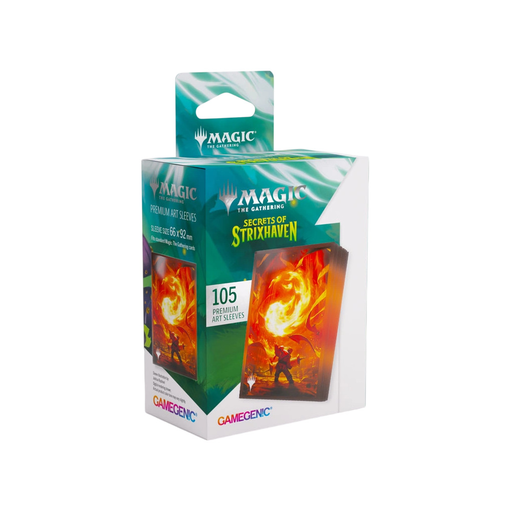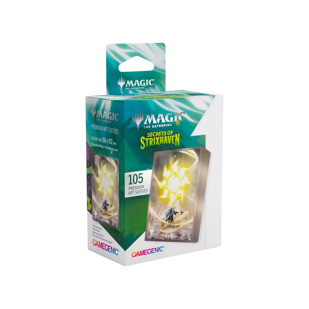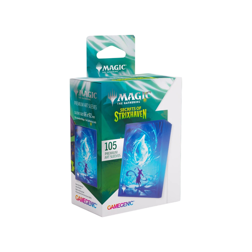 These premium-quality, full-color printed Art Sleeves with textured finish are a must-have for every fan of the game. The matte back and clear front provide an exceptional tactile feel and an incredibly smooth shuffle experience. Each pack includes 105 sleeves and comes in fully plastic-free full-art packaging with a retractable hanger.