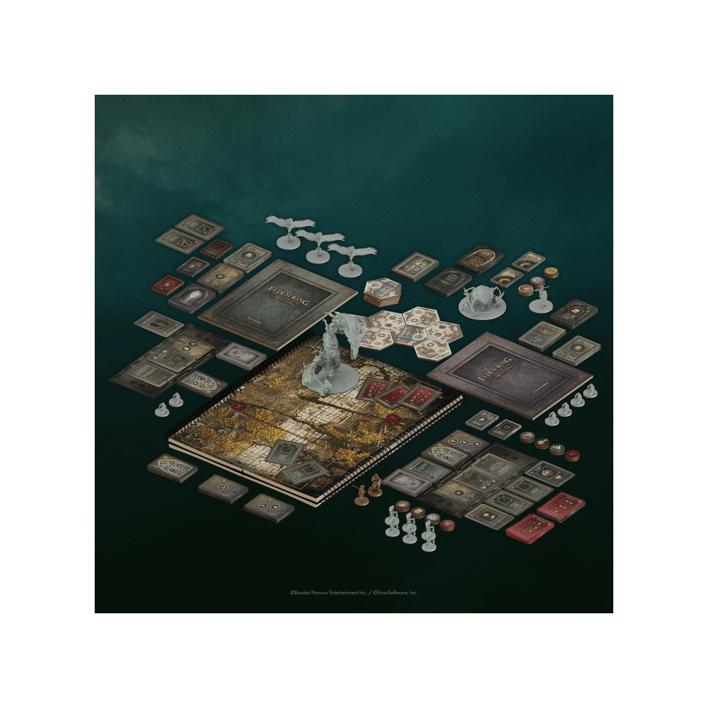 A co-operative board game for 1-4 players, ELDEN RING: Stormveil Castle challenges you to enter the crumbling stronghold of the Grafted King, perched high on the cliffs of Stormhill.