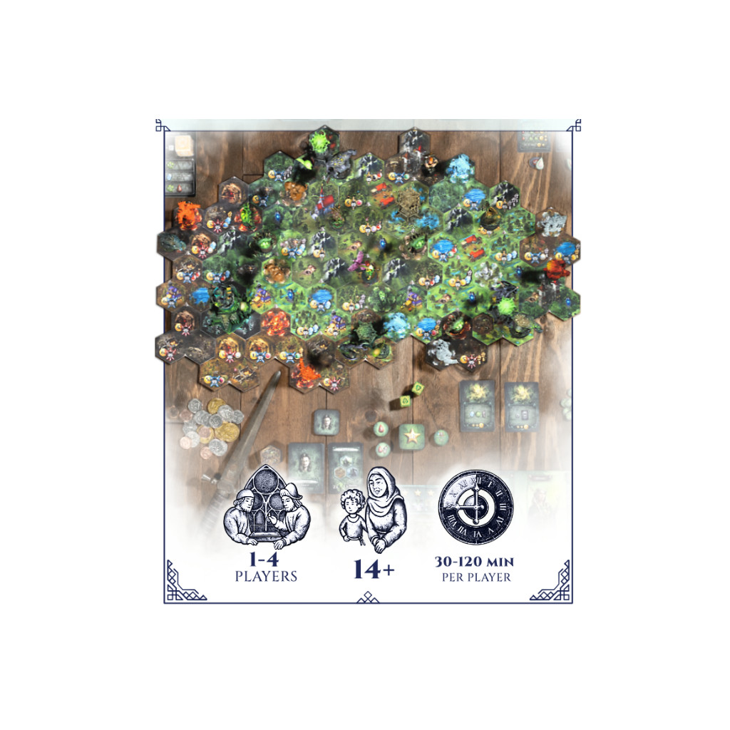 Embark on a wide range of epic fantasy adventures through infinitely replayable scenarios with unique objectives and thematic challenges. Explore an open word made of modular map tiles that changes each time you play. Discover areas to build your wealth and reputation by fighting monsters, finding resources, trading with merchants, pursuing side quests, and confronting elemental powers.