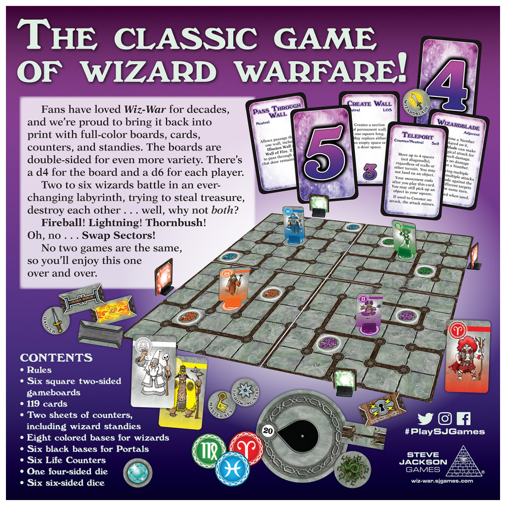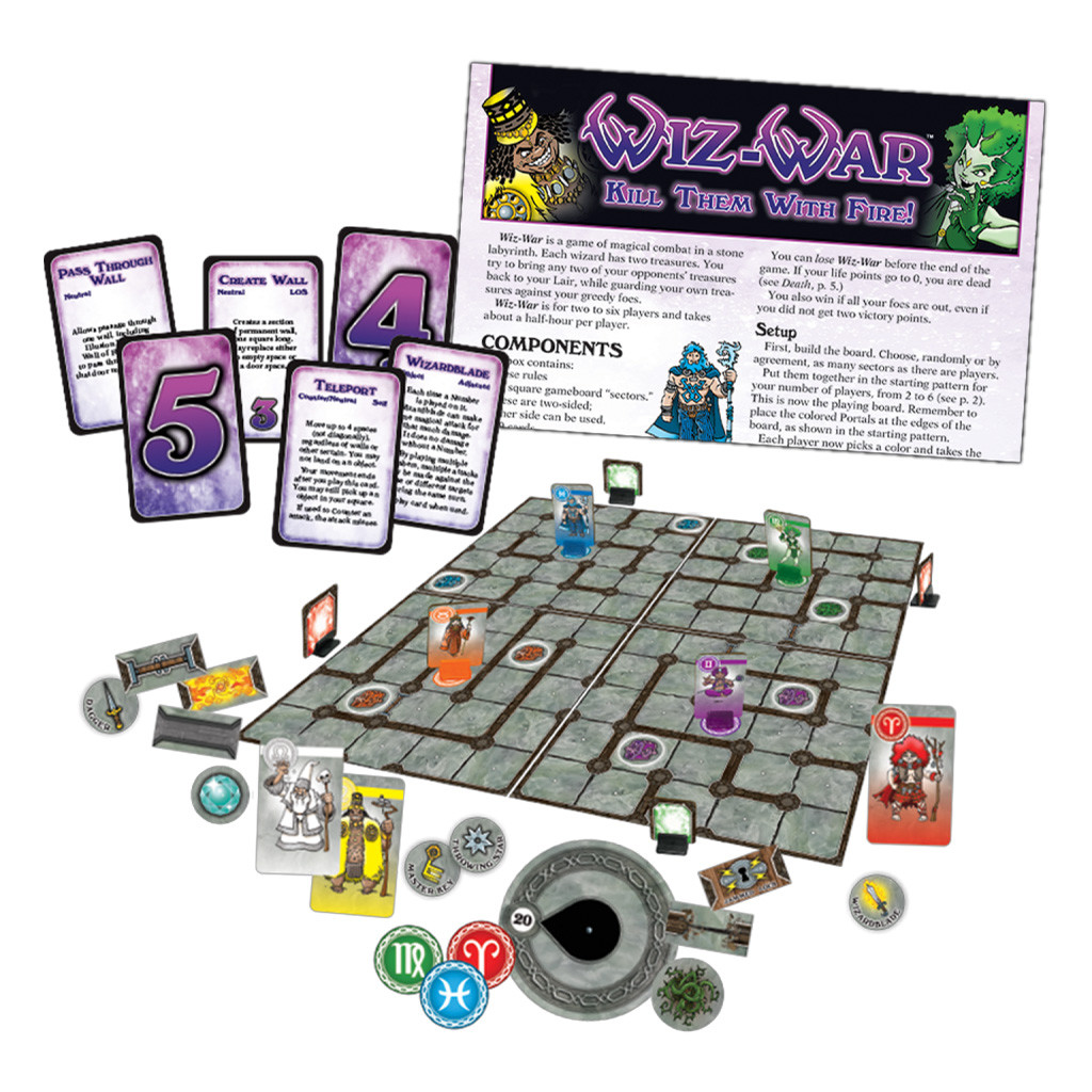 Unleash your inner wizard with the epic return of Wiz-War! Step into a magical dungeon where spells fly and wizards duel in a fast-paced fight for survival. In this latest (and most magical) edition designed by Tom Jolly, you'll encounter stunning art by the legendary Phil Foglio, modular game boards that keep every match fresh, and all the spell-slinging madness you crave. Whether you're zapping foes or snagging treasure, the goal is simple: be the last wizard standing! Ready your wands and prepare for some fiery fun!