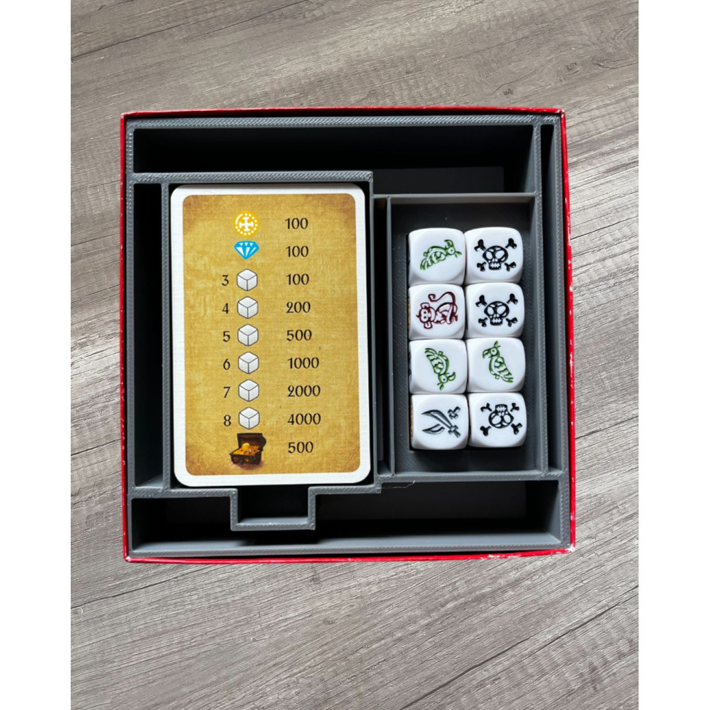 This 3D printed insert adapted for the game Mille sabords slips into the base box.