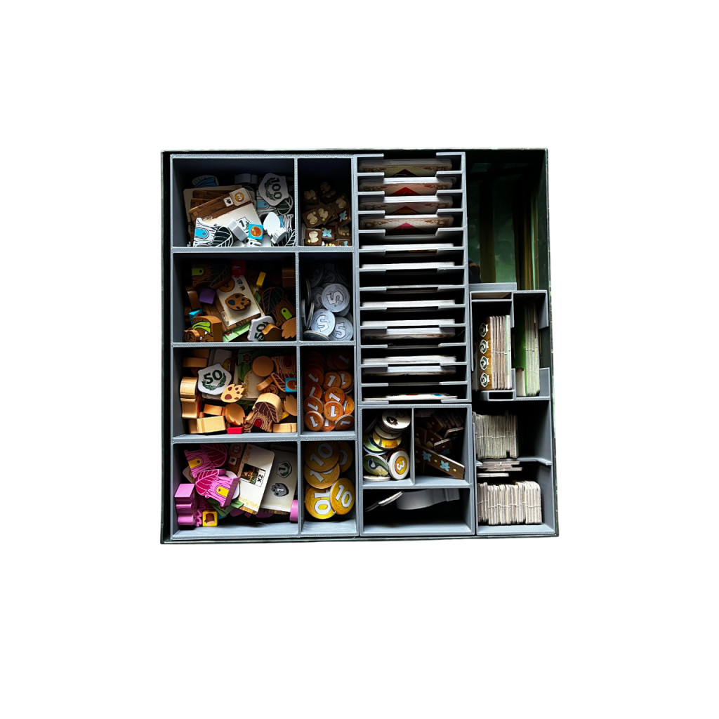 This 3D-printed insert, designed for the game "Kingdom Crossing" fits neatly into the base game box.