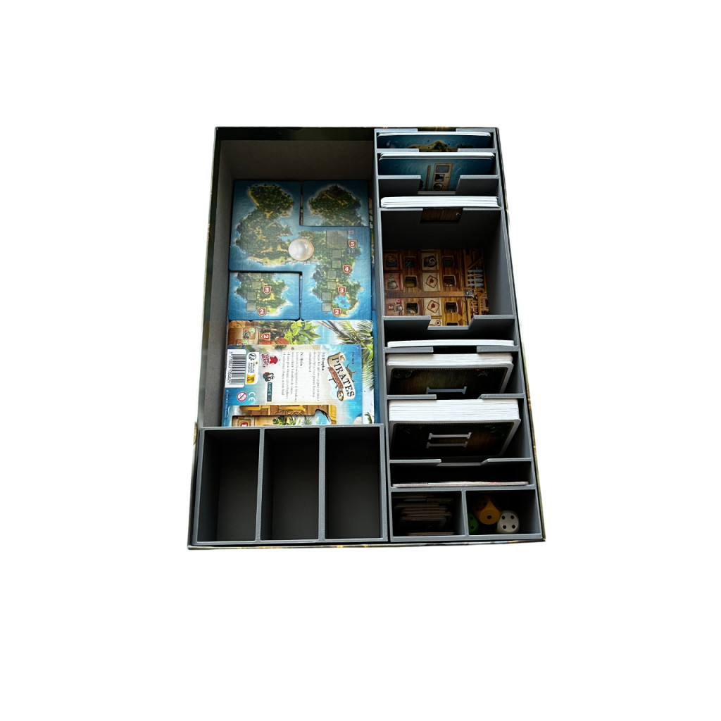 This 3D-printed insert, designed for the game Pirates de Maracaïbo fits neatly into the base game box.