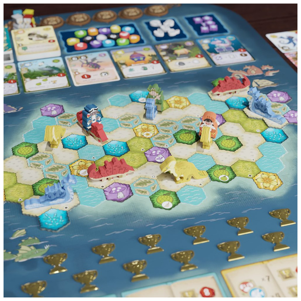 - Unique worker placement: Wondrous Creatures' worker placement mechanic offers an intriguing hexagonal puzzle experience. Deployed workers interact with surrounding icons to bring in resources or cards, and activate special effects!