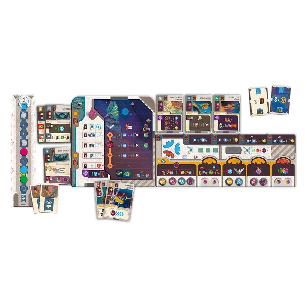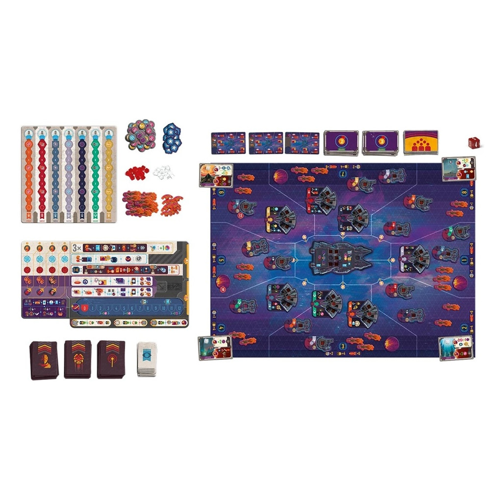 During each of the game's four cycles, each admiral will assign their crew to ships in the fleet to carry out actions, fight, explore, improve their forces, deploy new ships, and activate the Revenant's hyperdrive to escape an ever-increasing threat.