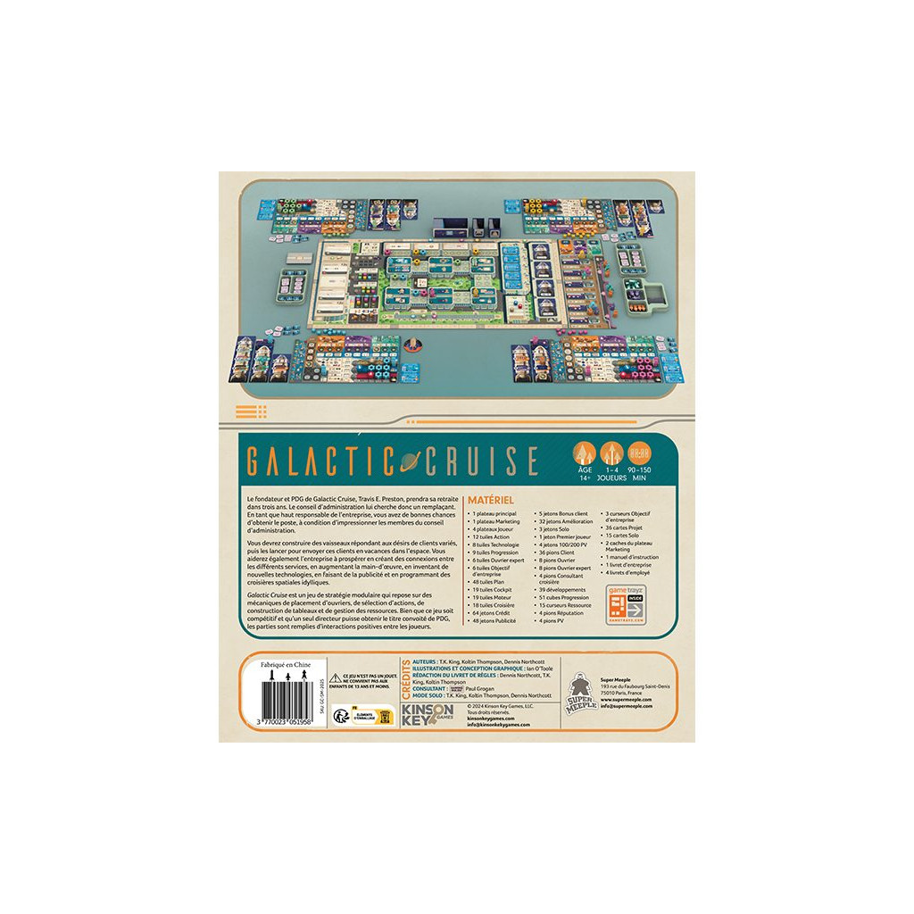 Galactic Cruise is a worker placement game that involves tableau building, multi-use cards, and resource management where players take on the role of high level supervisors of Galactic Cruise, the first company to offer extended-stay space vacations.