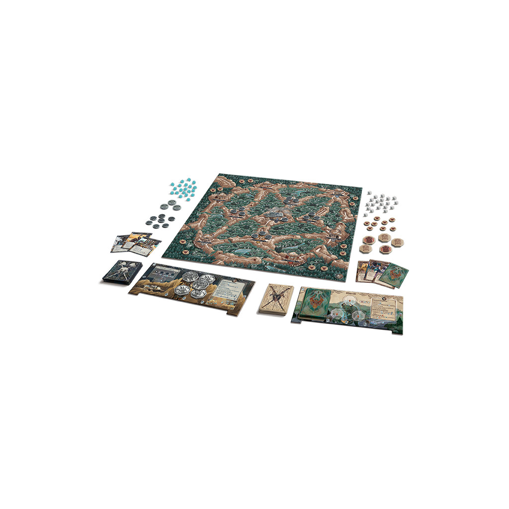 As the Commander of the Ironclad, your primary goal is to lay down the foundations of your forges in the outer mountains, and once you have collected enough crystals, build forges on the foundations. As the Chieftain of the Woodwalkers, your mission is to locate your people’s ancient totems through Vision cards, clear the path to them by defeating Ironclad warbands, and finally securing them in the outer forests, beyond the Ironclads’ reach. Once you have retrieved the third totem as the Chieftain, or built the third Forge as the Commander, you immediately win the game.