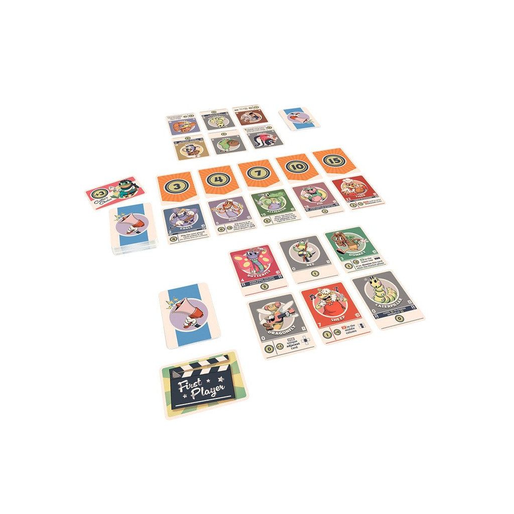 Each character card in your 3 x 2 grid has different talent effects. Some are resolved as soon as they are flipped over. Many will interact with each other and (with any luck) gain fame for your studio. But not all of them will have that special on-screen chemistry you're looking for. Some won't work well together at all!
