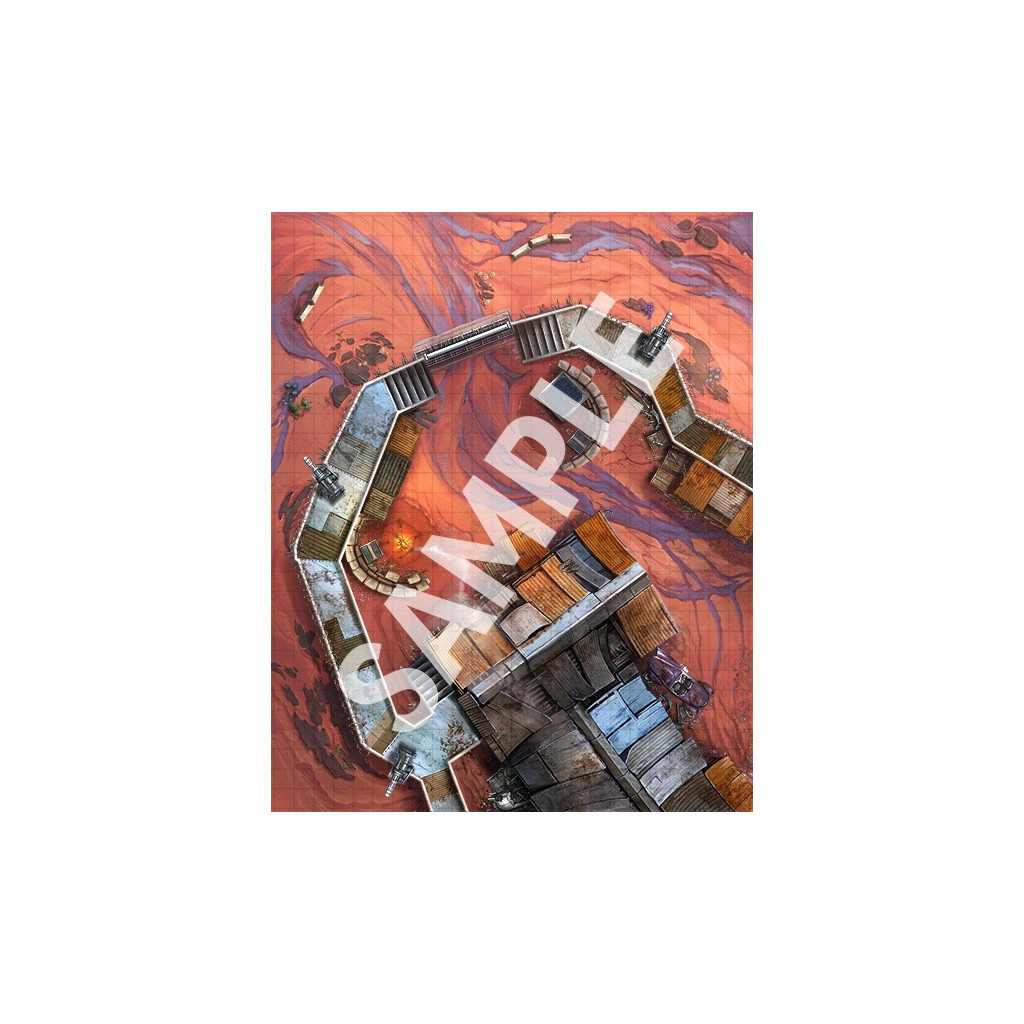 Starfinder Flip-Mat: Renegade Outpost measures 24" x 30" unfolded, and 8" x 10" folded. A Flip-Mat's coated surface can handle any dry erase, wet erase, or even permanent marker. Usable by experienced GMs and novices alike, Starfinder Flip-Mats fit perfectly into any Game Master's arsenal!.