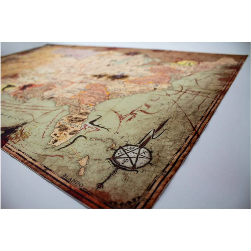 Weird Frontiers A2 Velvet Map offers a highly detailed, custom-printed illustration on luxurious velvet fabric, measuring 25.5 by 16.5 inches. Created by artist J. and produced in the UK by All Rolled Up, this map showcases the main setting from the Weird Frontiers RPG by David Baity. Its plush texture adds a tactile dimension to tabletop gameplay, enhancing the pulp adventure atmosphere. Despite being currently out of stock, this collector’s piece combines quality craftsmanship with vivid artistry, perfect for enthusiasts seeking a distinctive and immersive role-playing accessory.