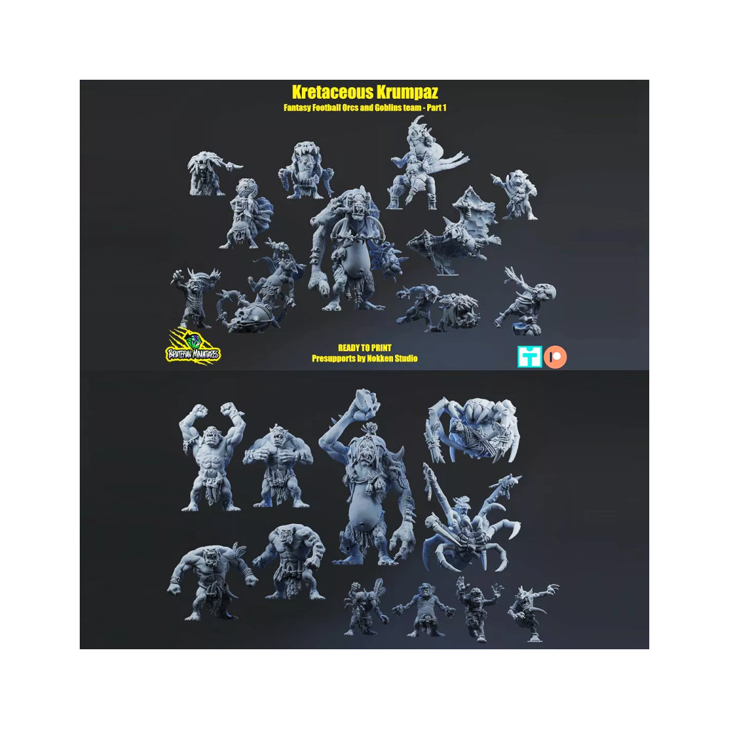 A small team of orcs and goblins kretatcious krumpaz for your Fantasy Football games, including :
