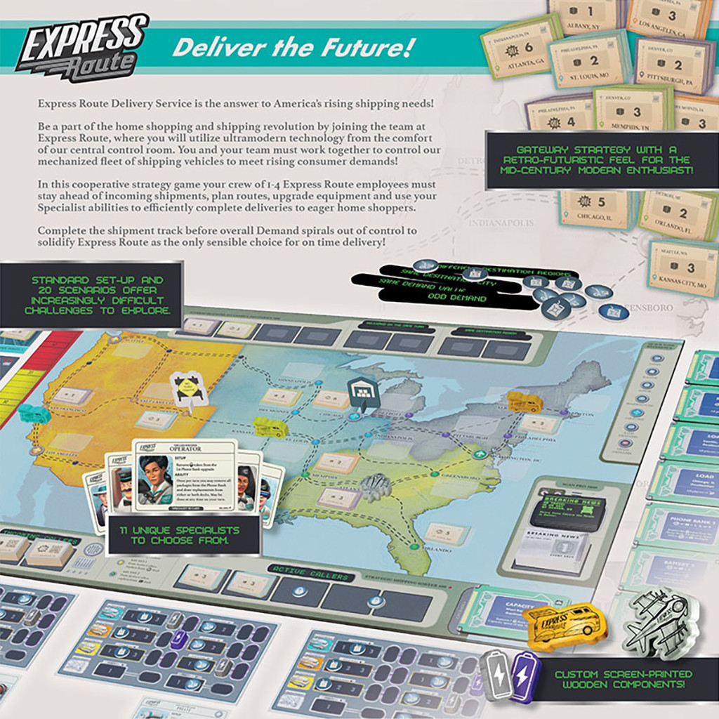 In this cooperative strategy game your crew of 1-4 Express Route employees must stay ahead of incoming shipments, plan routes, upgrade equipment and use your Specialist abilities to efficiently complete deliveries to eager home shoppers.