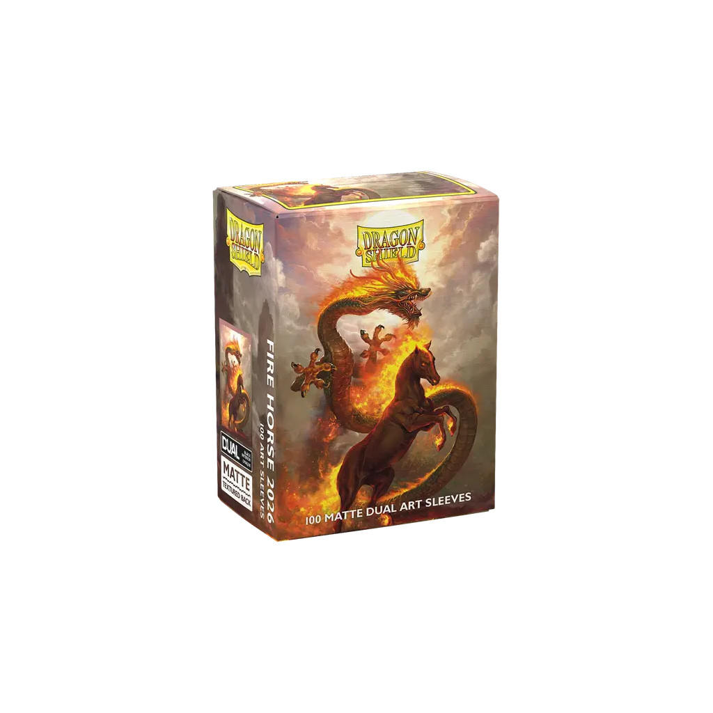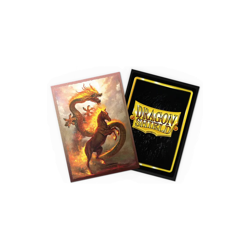 Let the unwavering spirit of the Fire Horse ignite your way to commanding victories. Featuring fiery artwork by Godfrey Escota these sleeves will set your resolve ablaze to charge into the Lunar New Year.